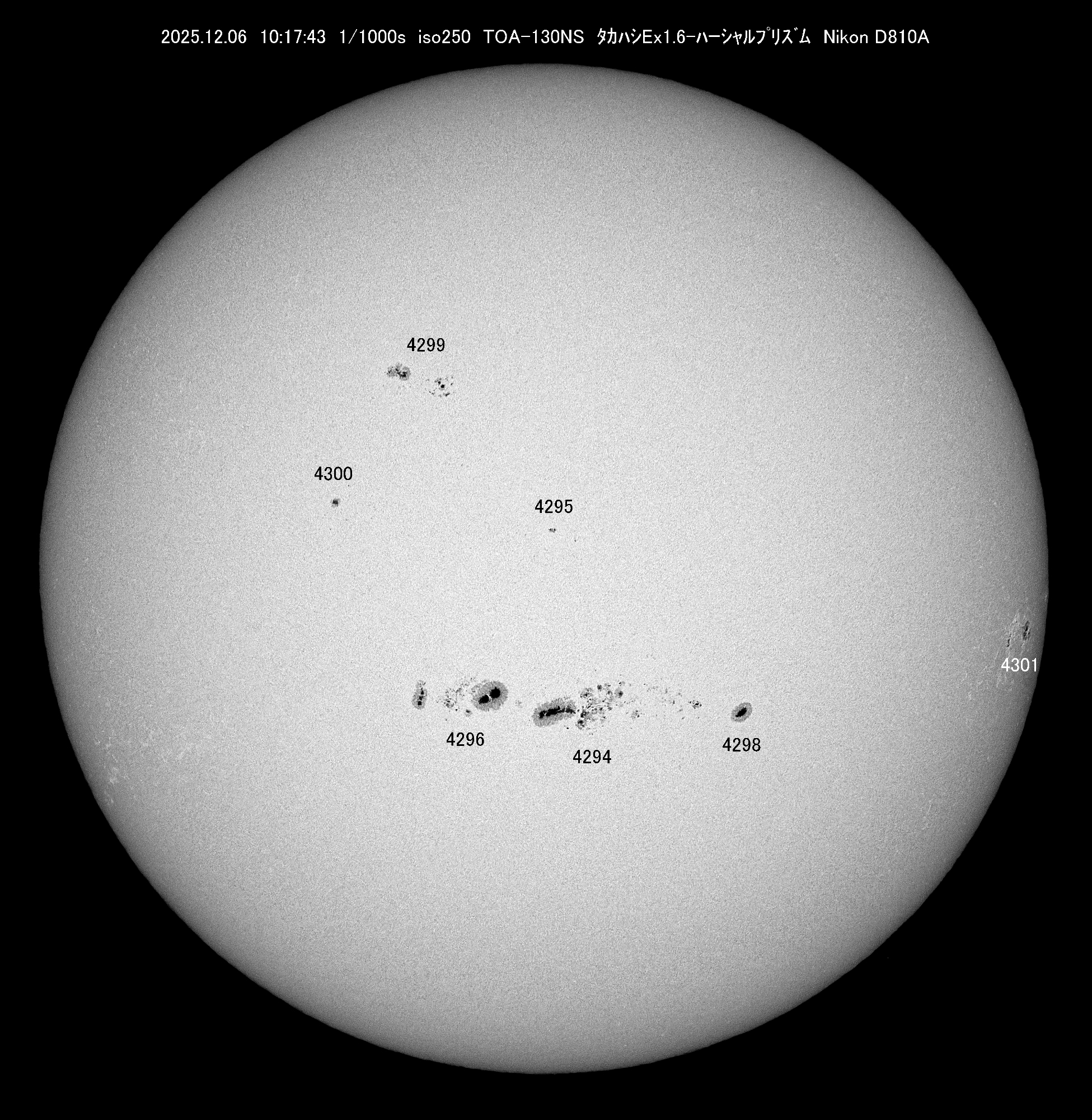 太陽黒点(活動領域14294&14296&14298) 2025/12/06