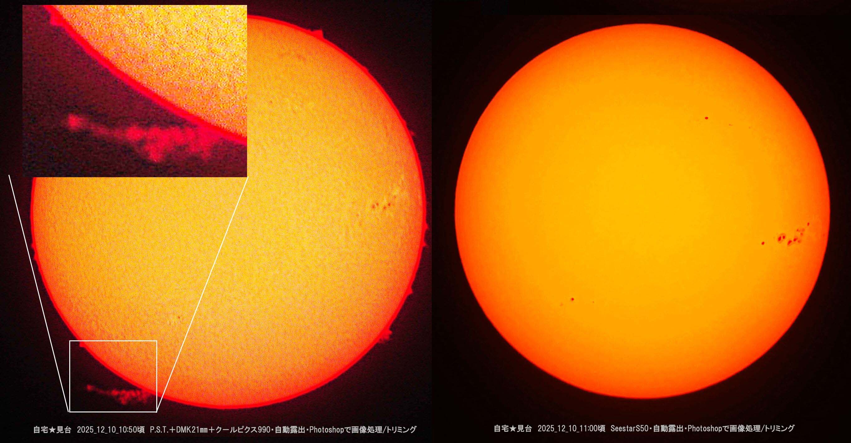 太陽黒点(活動領域14294&14296) 2025/12/09