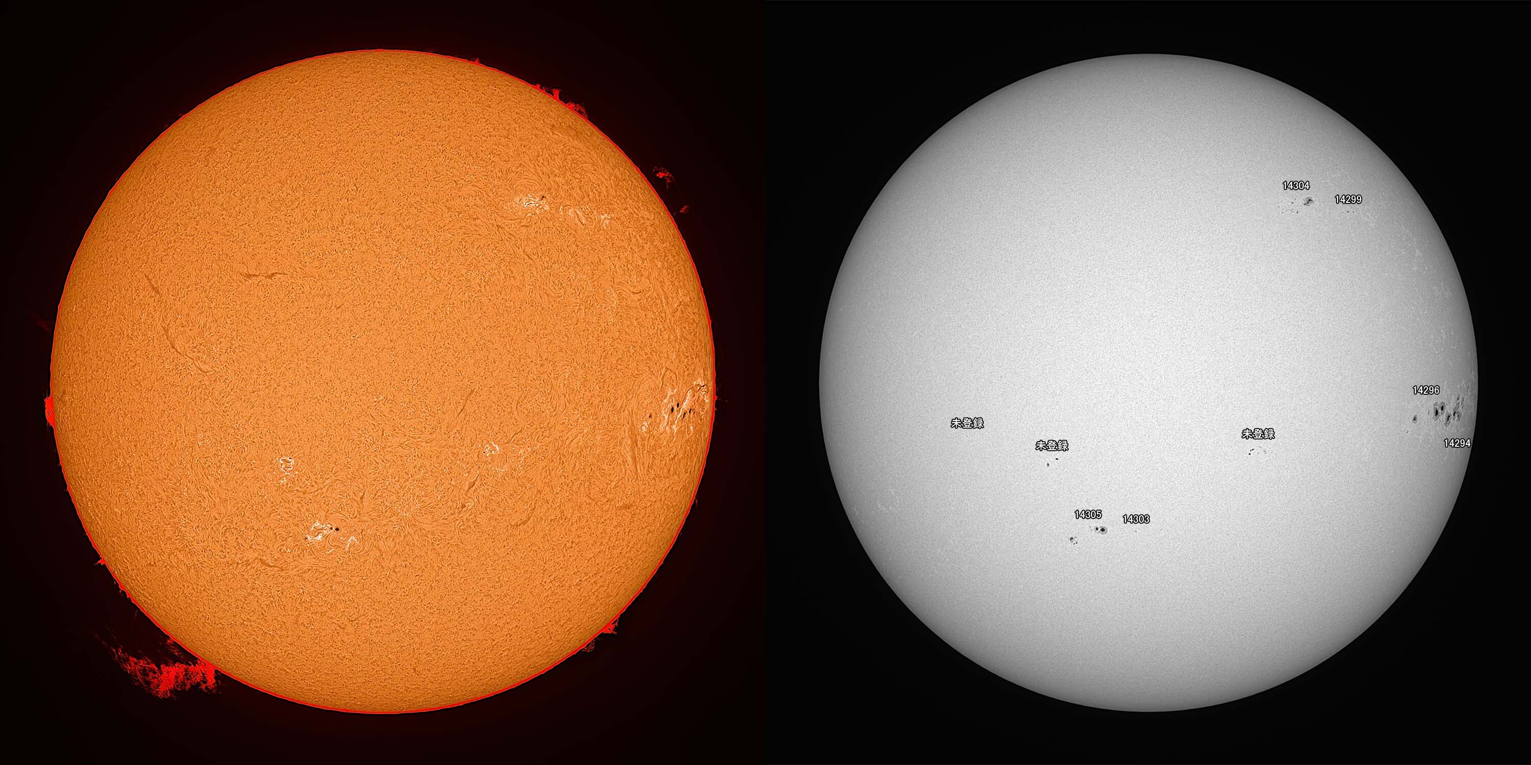光球面:FireCapture、ROI 3600x2400、Gain 100、1.85msec x1000、撮影時間 31秒/プロミネンス:FireCapture、ROI 3600x2400、Gain 300、1.85msec x1000、撮影時間 31秒