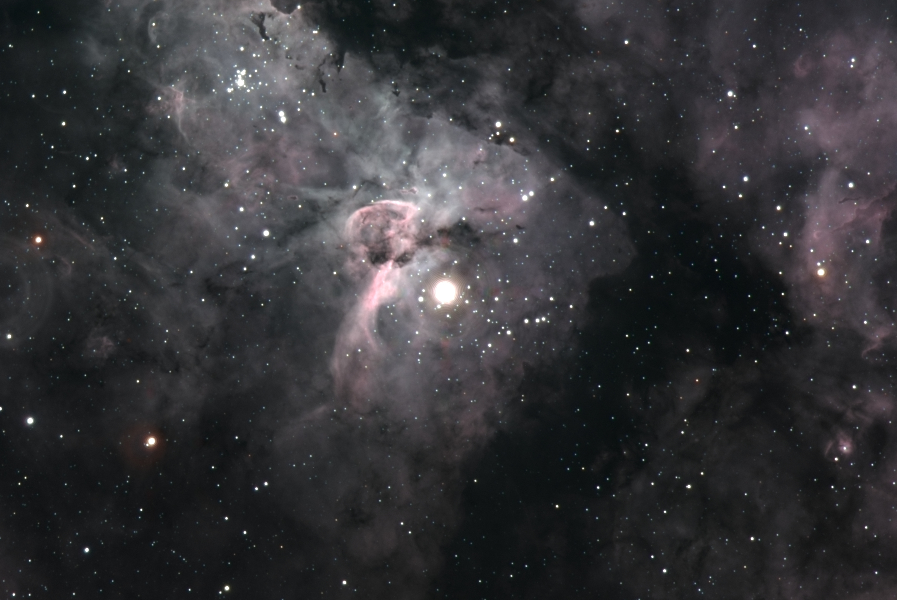 IDAS LRGB Type-4によるRGB撮影でIR cutを常駐させていませんので、見慣れない色合いになっています。Haフィルタ-によるEta Carinae星のゴ-ストが左右端に出ています。