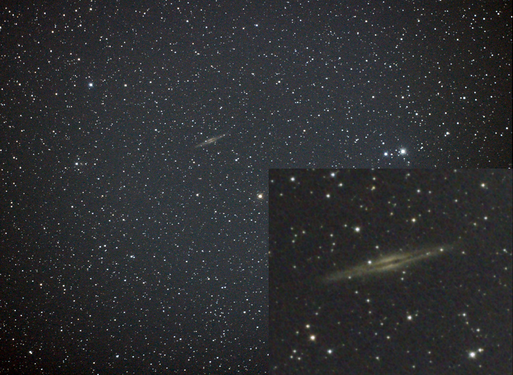 撮ってみたかったアンドロメダ座のエッジ・オン銀河NGC891。ε-130にAPS-Cデジカメではすごく小さかったので、同望遠鏡に惑星カメラLiveで撮った画像を付けました。