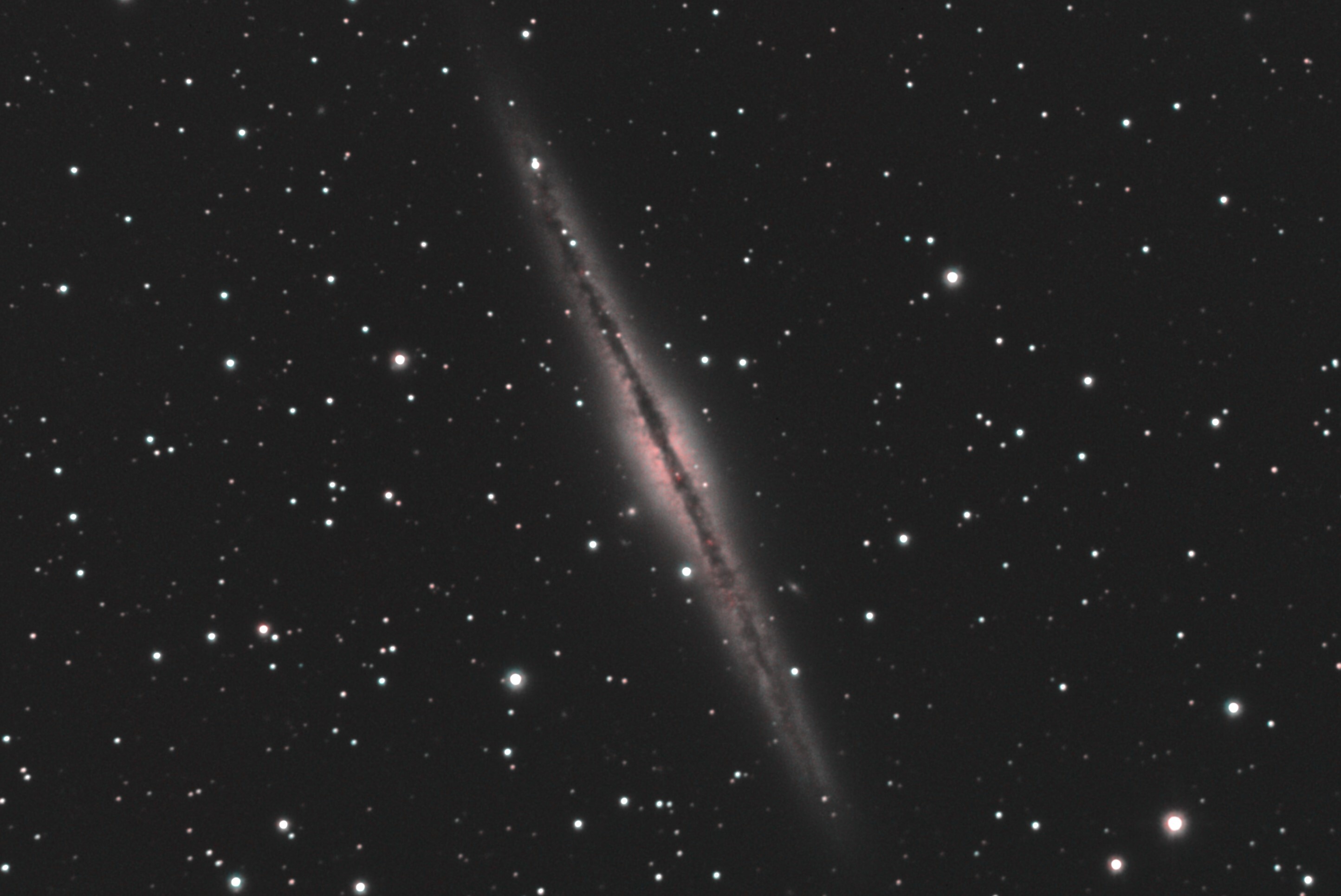汎用の0,63倍レデューサーのかわりにStarizona SCT Corrector LF(旧タイプ)を使用しましたが、周辺減光がなだらかで処理しやすく、周辺まで良好な星像です。バックフォーカスが長く、手持ちの延長筒の抜き差しでBF調整してますが、そのためカメラの傾きが生じているようです。