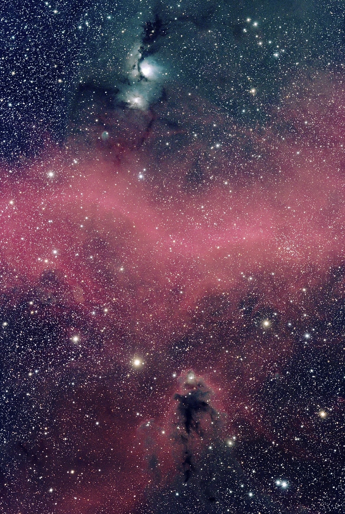 LDN1622 & M78 Takahashi FSQ85EDP SXD2赤道儀 ASIAIR ガイディング カメラ ZWO 2600MC PRO レデューサーQB0.73× F3.9 焦点距離330mm=495mm フィルター IDAS HEUIB-II ゲイン100 冷却温度-10° 120秒 166枚スタック ノートリミング ステライメージ10で処理 BXT系 AI系 デコンボリューション不使用