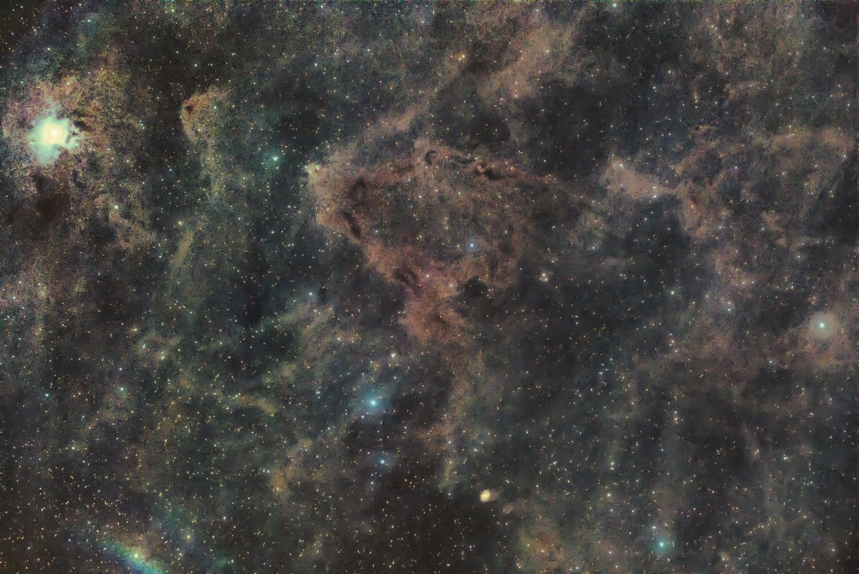 アイリス星雲付近は分子雲が豊富で見ごたえがあります。 オートガイドが不調で撮影枚数を稼げませんでした。