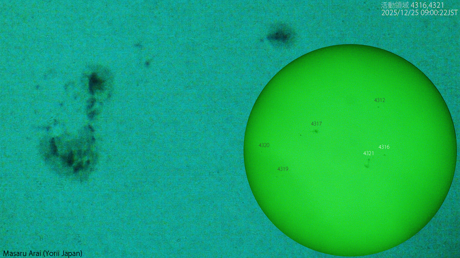 SE120L+DMC-GH1よる、活動領域 4316 ( Cso/Cso ) 4321 ( Dai/--- ) です。 NICT情報:活動領域4317などでCクラスフレアが数回発生し、最大のものは、活動領域4317で24日19時21分JSTに発生したC4.9のLDEフレアでした。
