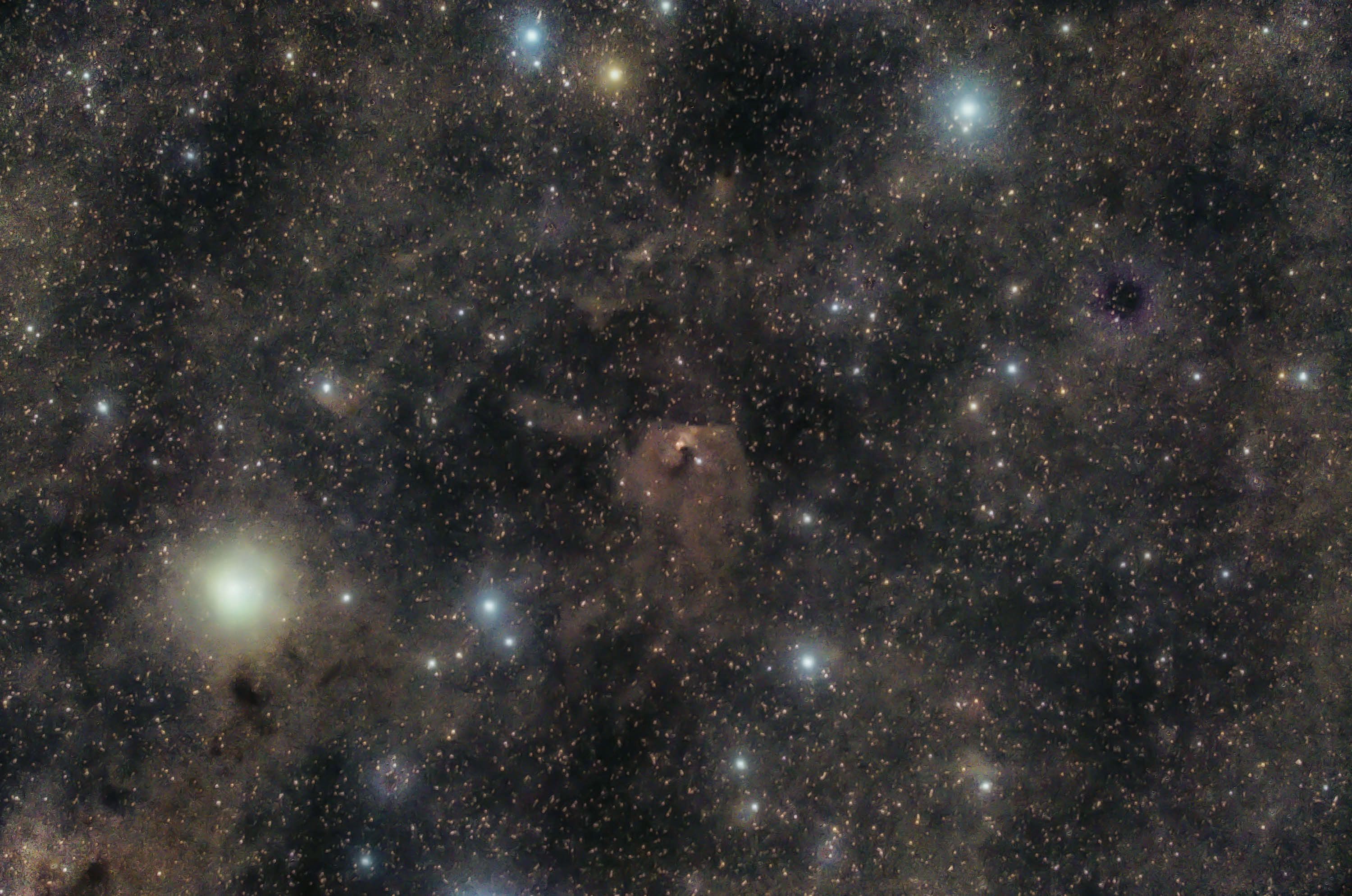 NGC1555は、おうし座に位置する反射星雲で、 変光星のおうし座T星からの光を受けて輝いています。
