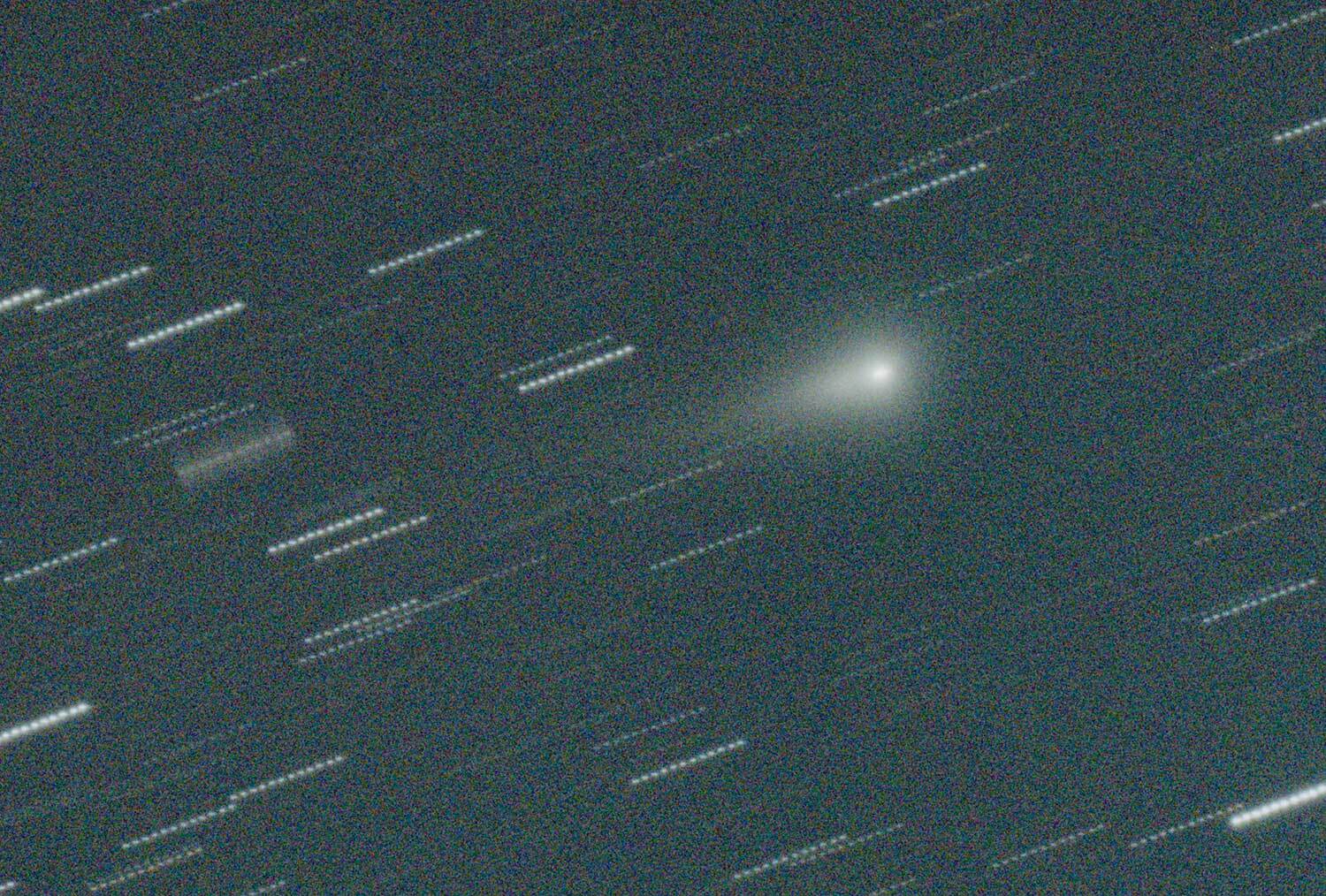 自宅にて撮影しました。180s12枚から強調、トリミングしています。左側が太陽方向なので左に伸びている尾はアンチテイルで、画像では7分ほど写っています。
