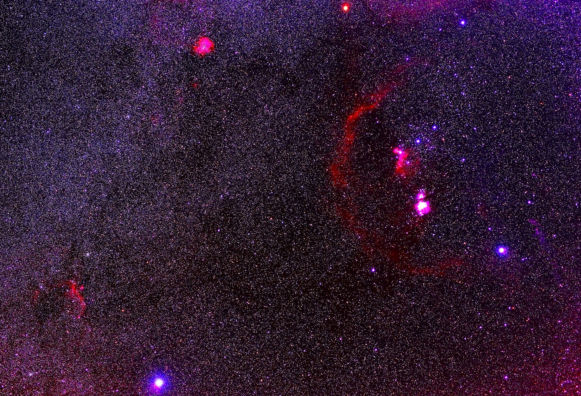 「オリオン座南部からシリウス付近の空域」を撮影しました。 ほぼ無光害なのでノーフィルターで撮影しました。 微光星がびっしりと写ってくるので星雲が埋もれてしまいます。 弱い光害カットフィルターを使用してコントラストを上げる必要があります。 贅沢な悩みになりますかね?