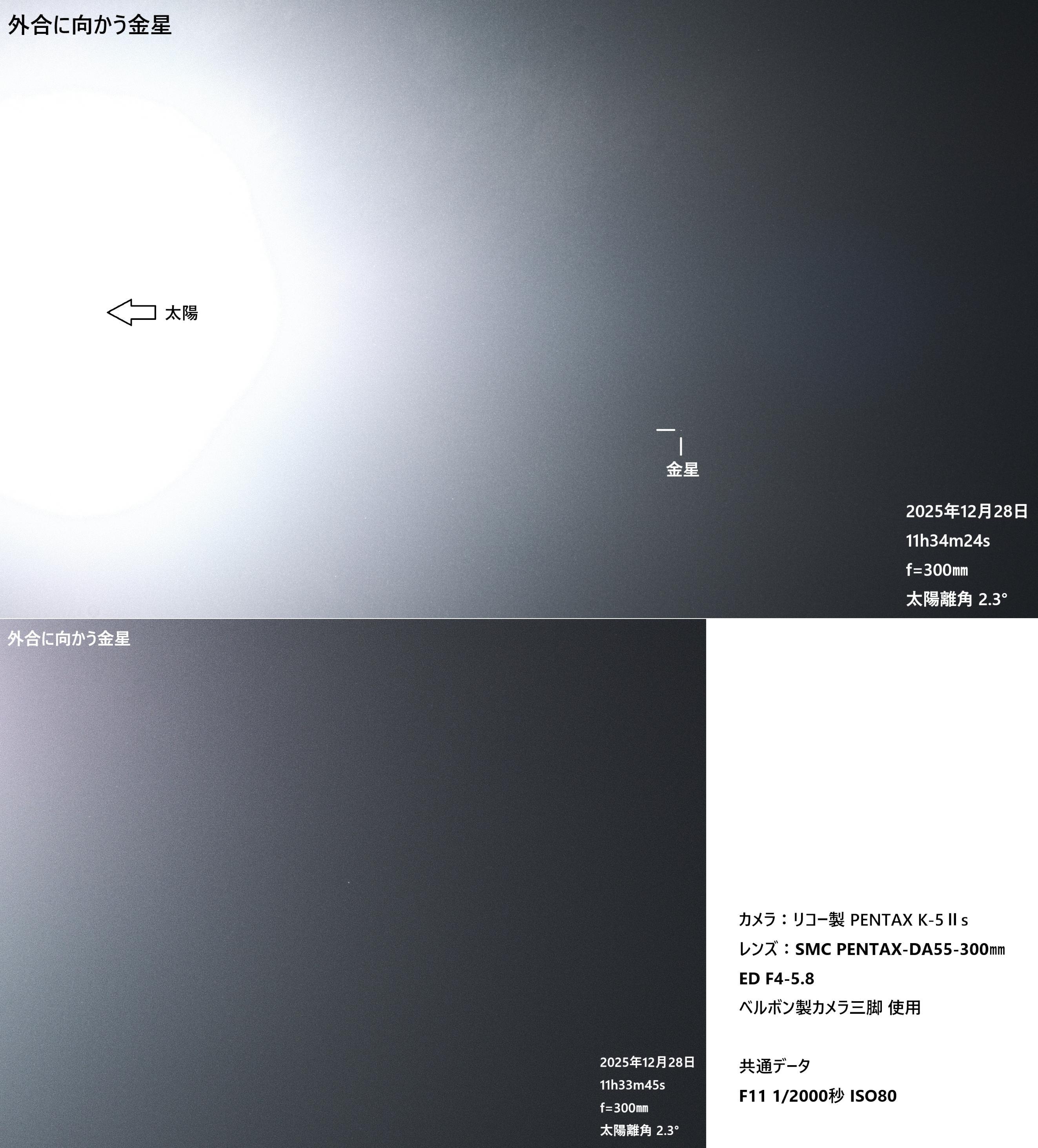 果たしていつまで写るのか。1°台は写せるでしょうが、外合は0.7°なのでテレコンで焦点距離を伸ばすとかも必要か?