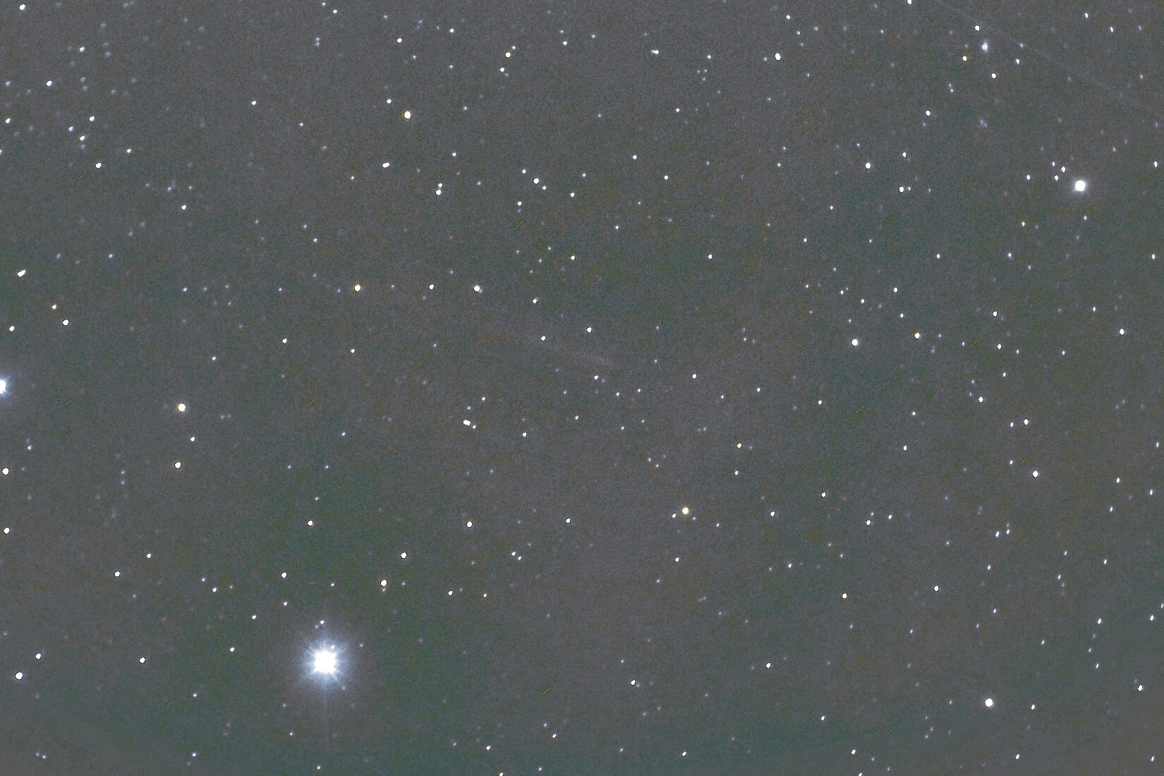 アンドロメダ座の大銀河M31の東2.5度付近を南下しています。 明るさは随分暗くなって15等級くらいでしょうか。 月齢8.3の月明りの影響も受けていると思われます。