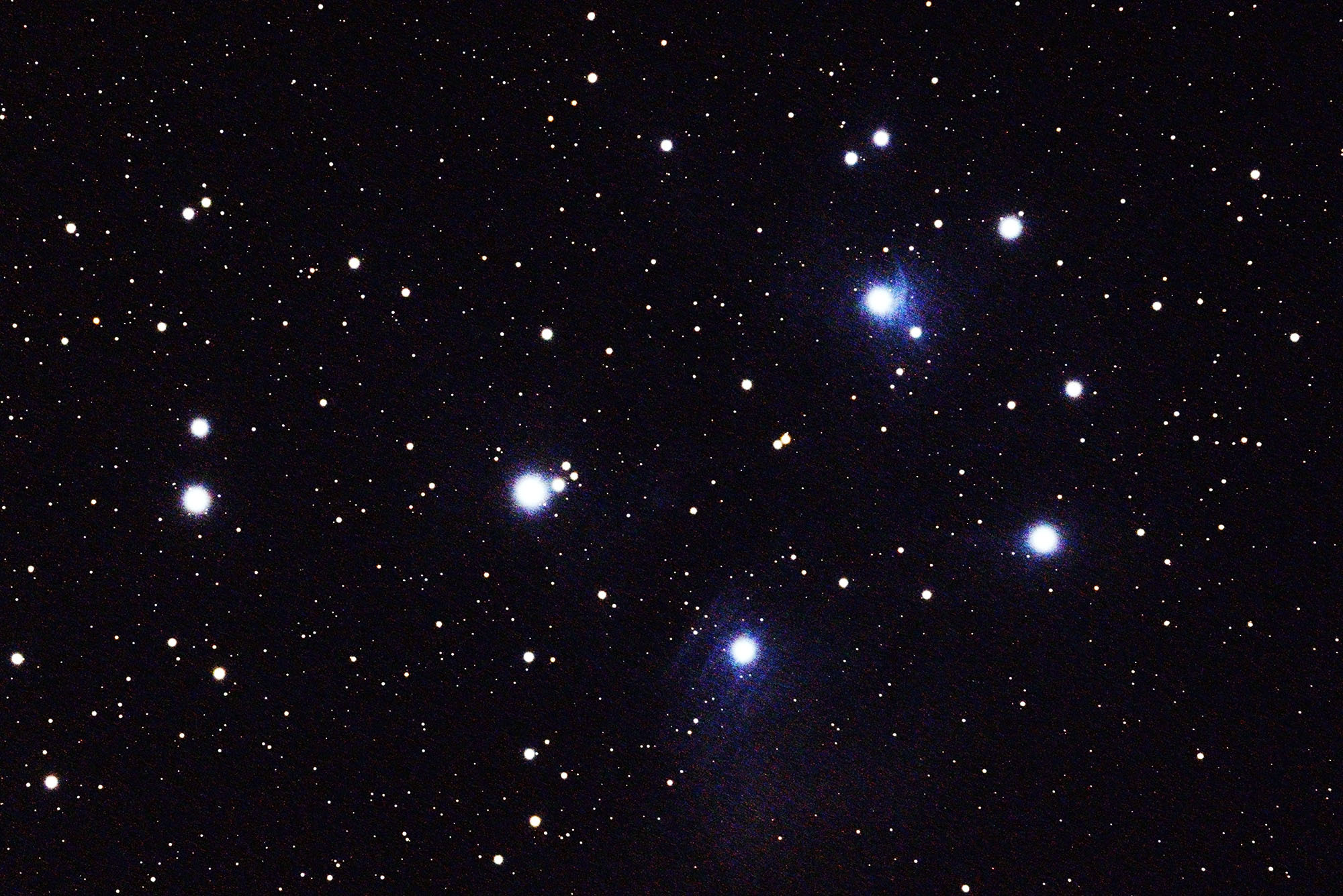 「M45」を撮影しました。  月齢8.4の月がありましたが撮影してみると意外に良く写りました。  反射星雲部も少し写っています。  ノーフィルターでの撮影です。