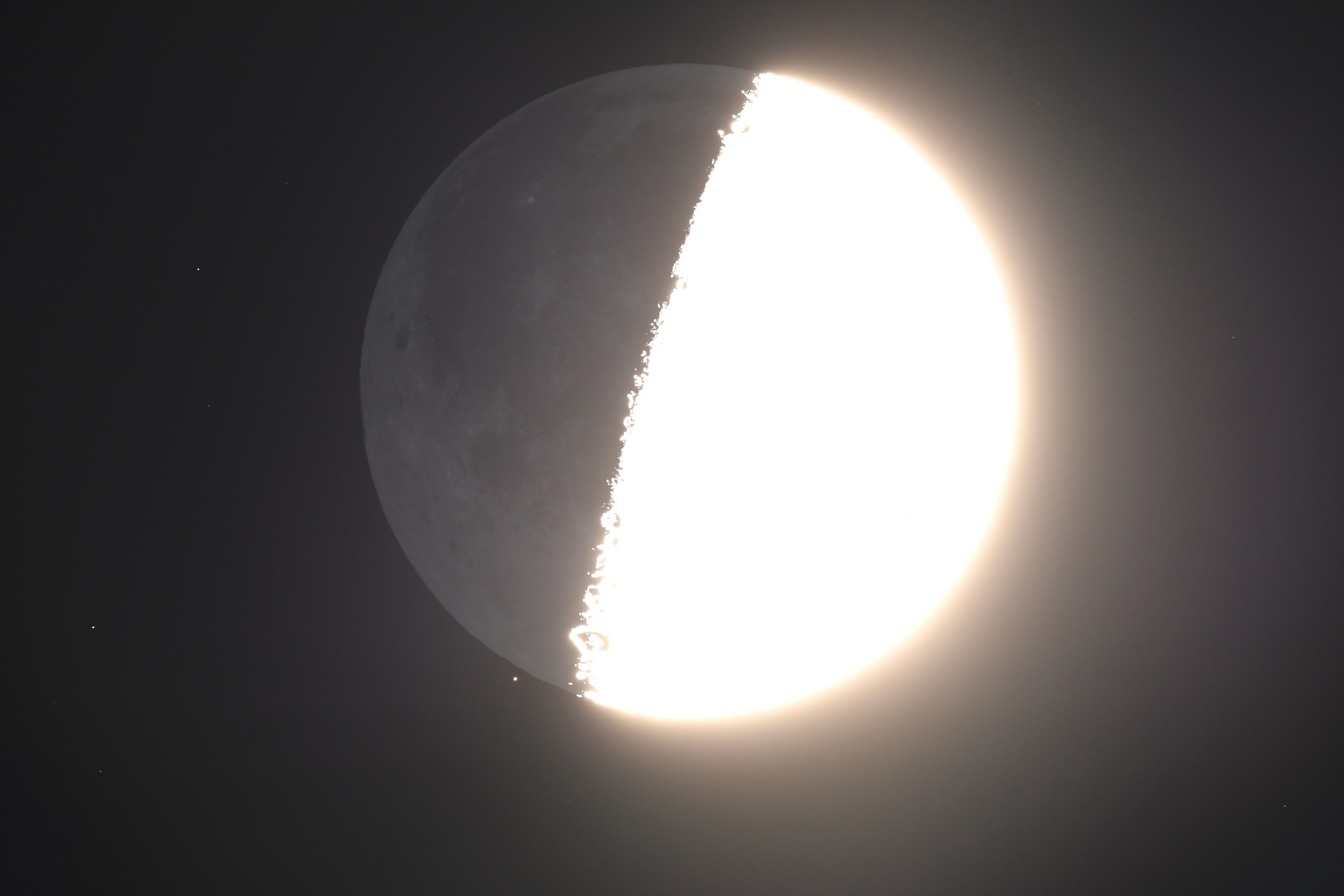 大阪市では食とはならず、月の南側の地球照の部分に接近しました。