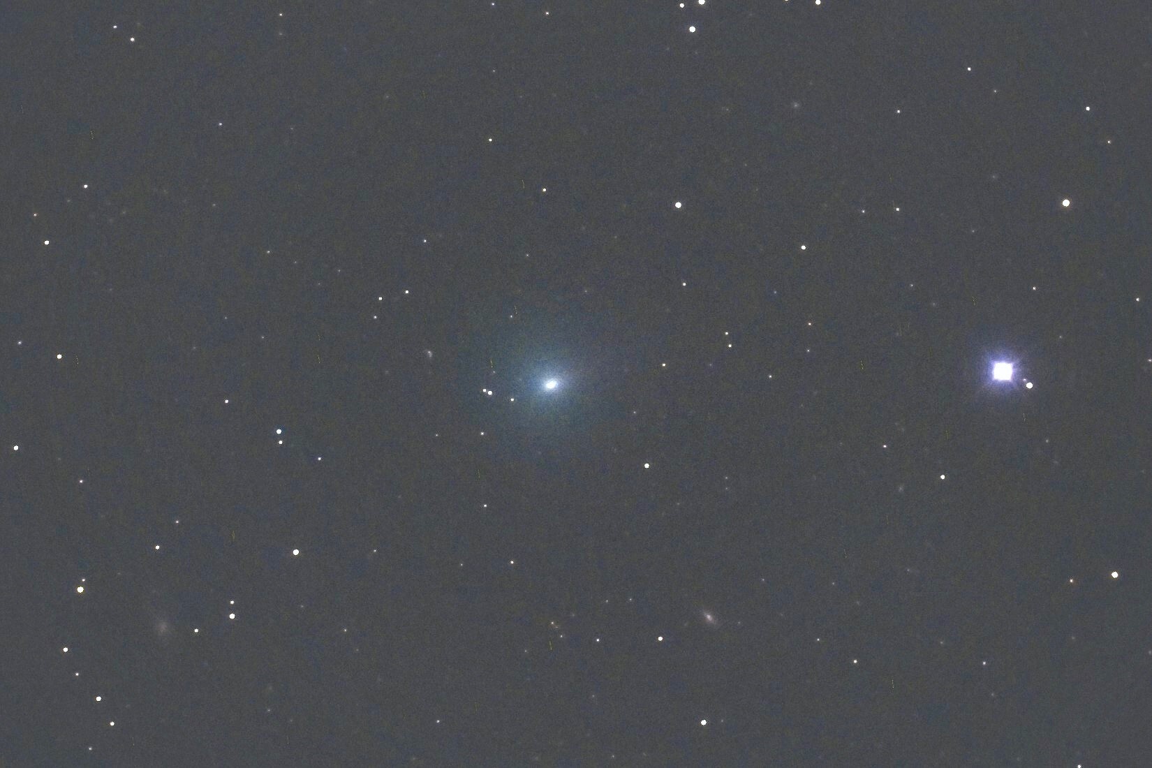 この日は「かみのけ座」銀河団の中を通過中でした。視野外ですが、西(右)にM91があります。画像には微光銀河が幾つか見えています。 彗星の明るさは9等級前半でしょうか。