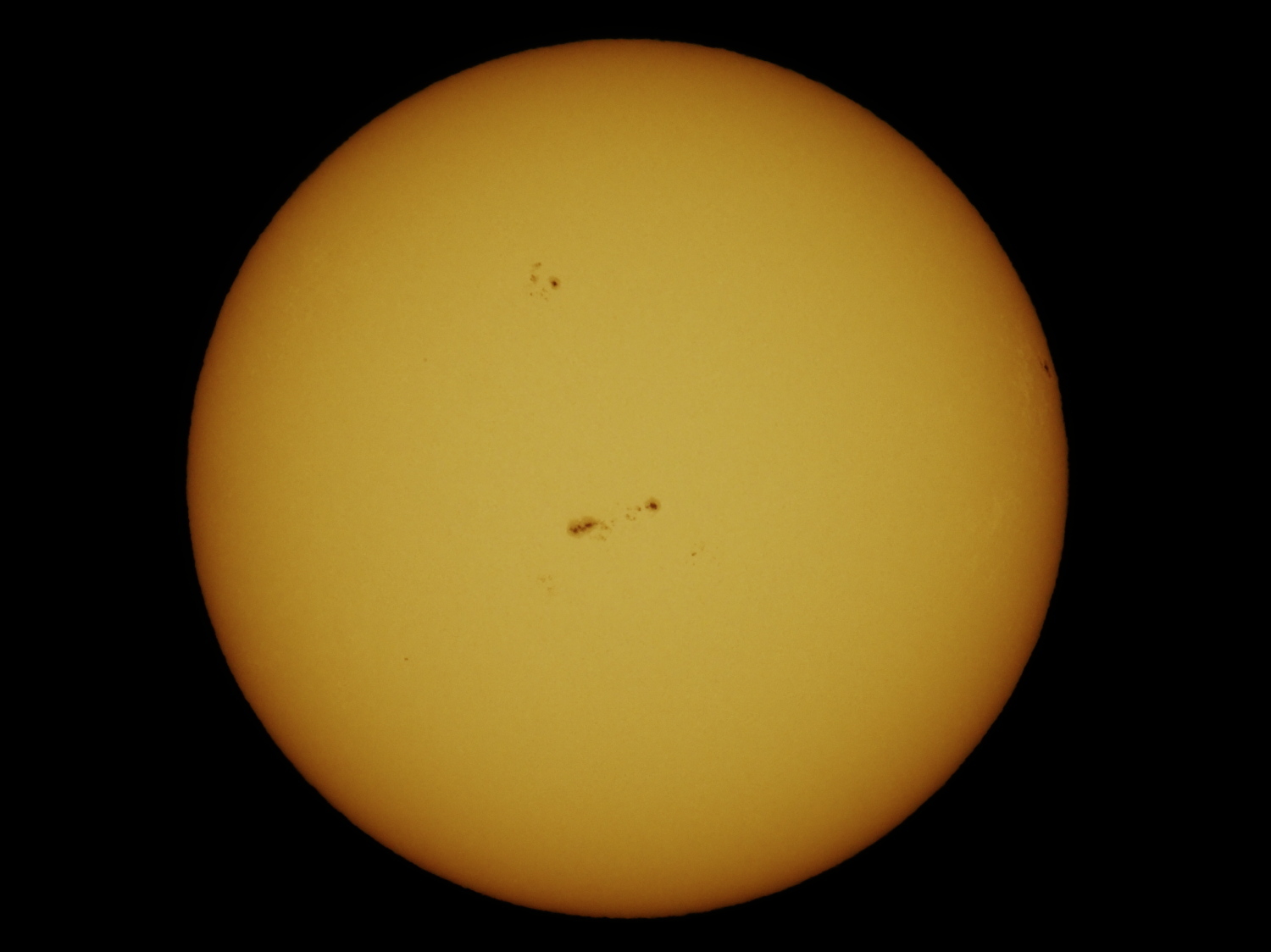 黒点は少なくなっています。雲の合間からの撮影。