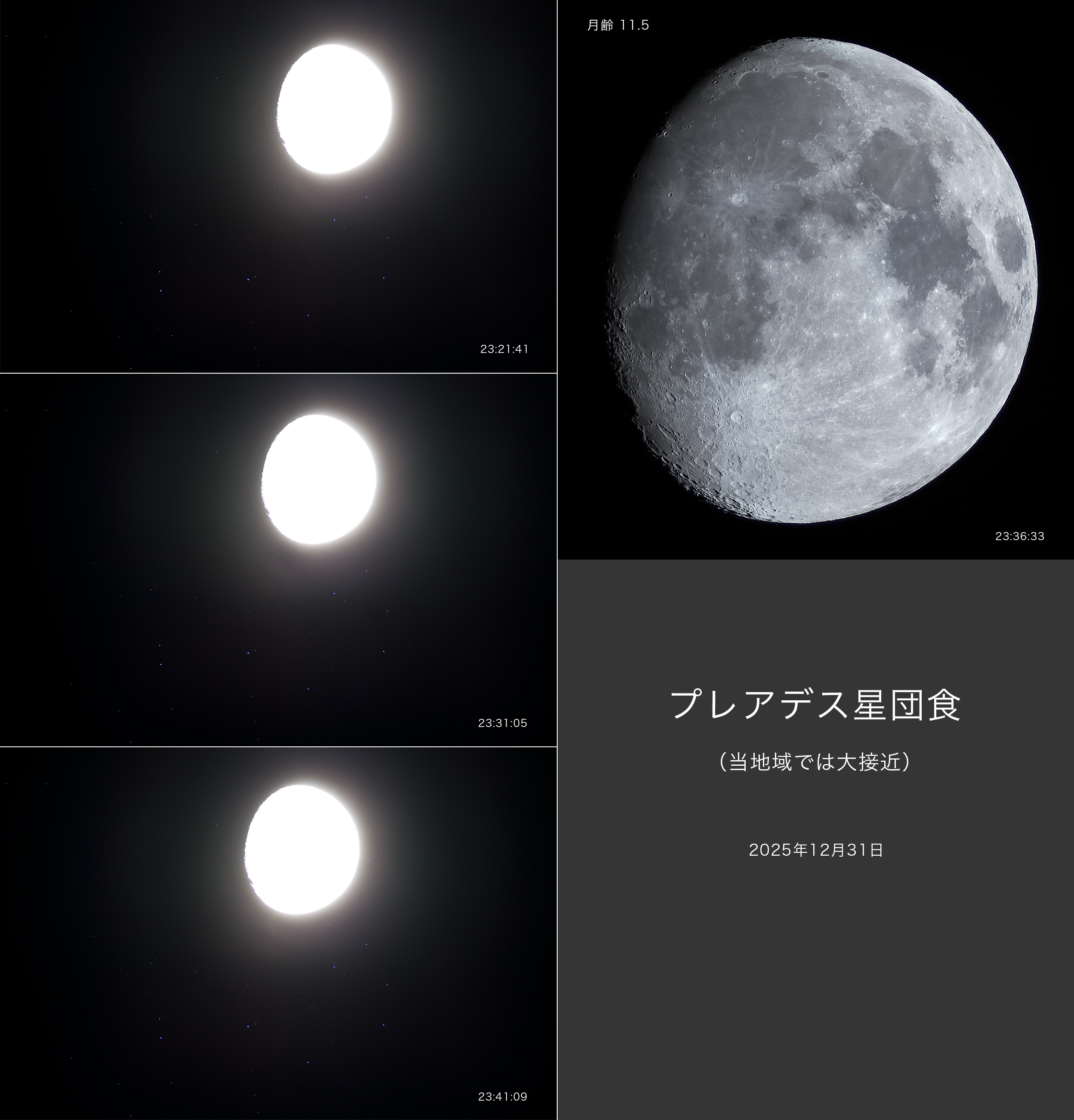 上記は、画面向かって左「大接近」の撮影データ(全カット同じ) 画面向かって右上「月」の撮影データ 機材は上記と同じ ISO 100 1/250 SILKYPIX DS9にてRAW現像。Photoshop CS5にてレベル補正&トーンカーブ調整。トリミング&リサイズ後TIFF保存。SILKYPIX DS9にてシャープ処理+PhotoshopCS5にてアンシャープマスク。