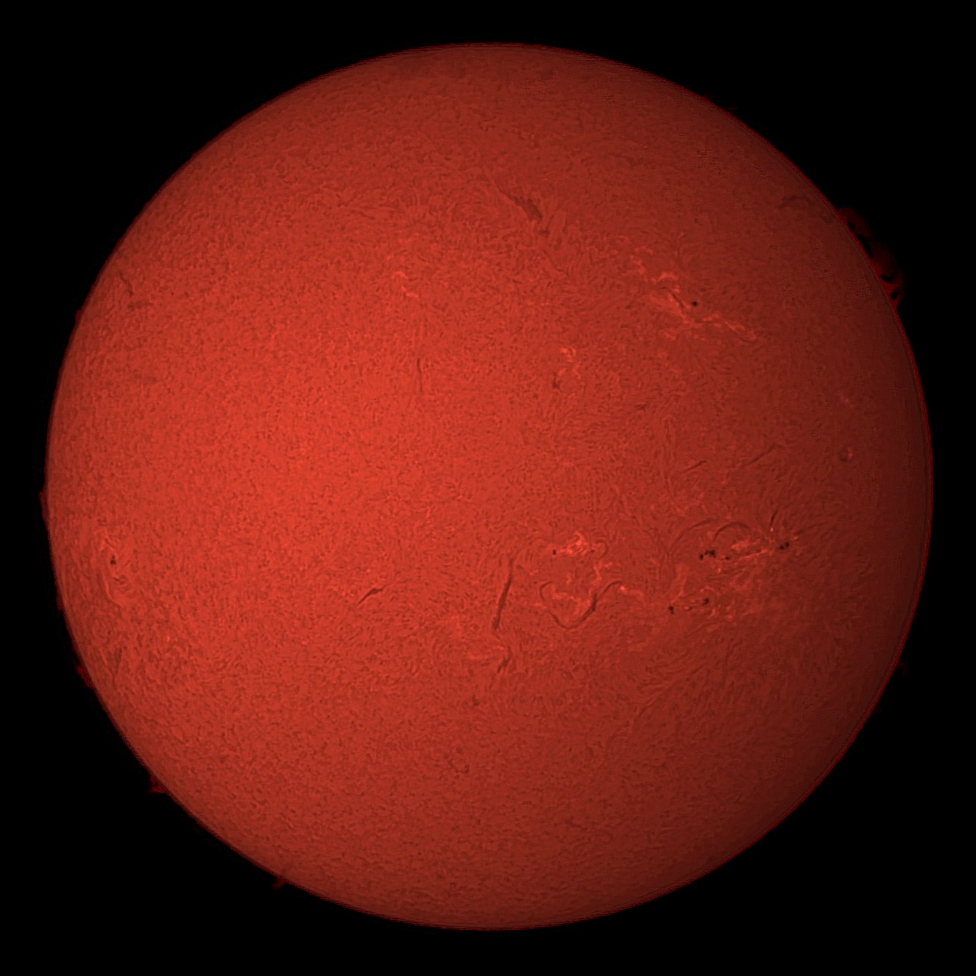 01/04の太陽です。2時方向の複雑なプロミネンスが印象的です。