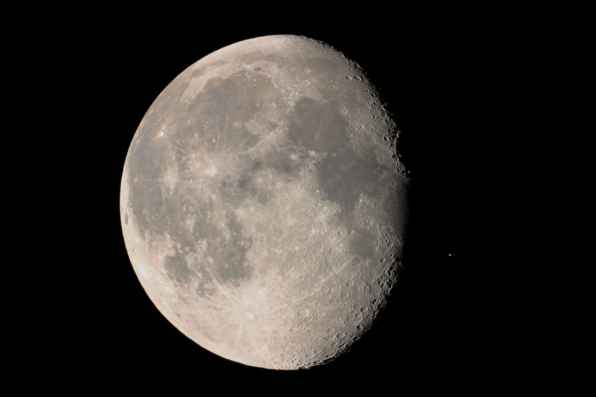 今早暁のレグルス食を望遠鏡で見た感じに仕上げてみました。当地は快晴でしたが、シーイングが悪かったので月面のよい画像が少なく、画像処理に手こずりました。当地でのレグルスの出現時刻は02h18m55s前後でした。