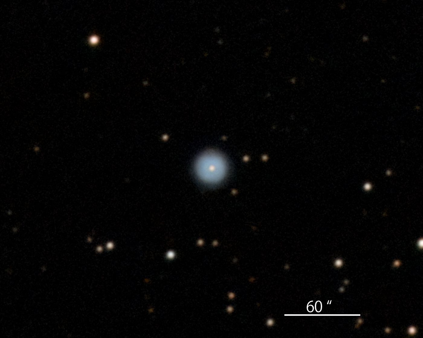 オリオン座にある、丸く青い小さな惑星状星雲です。