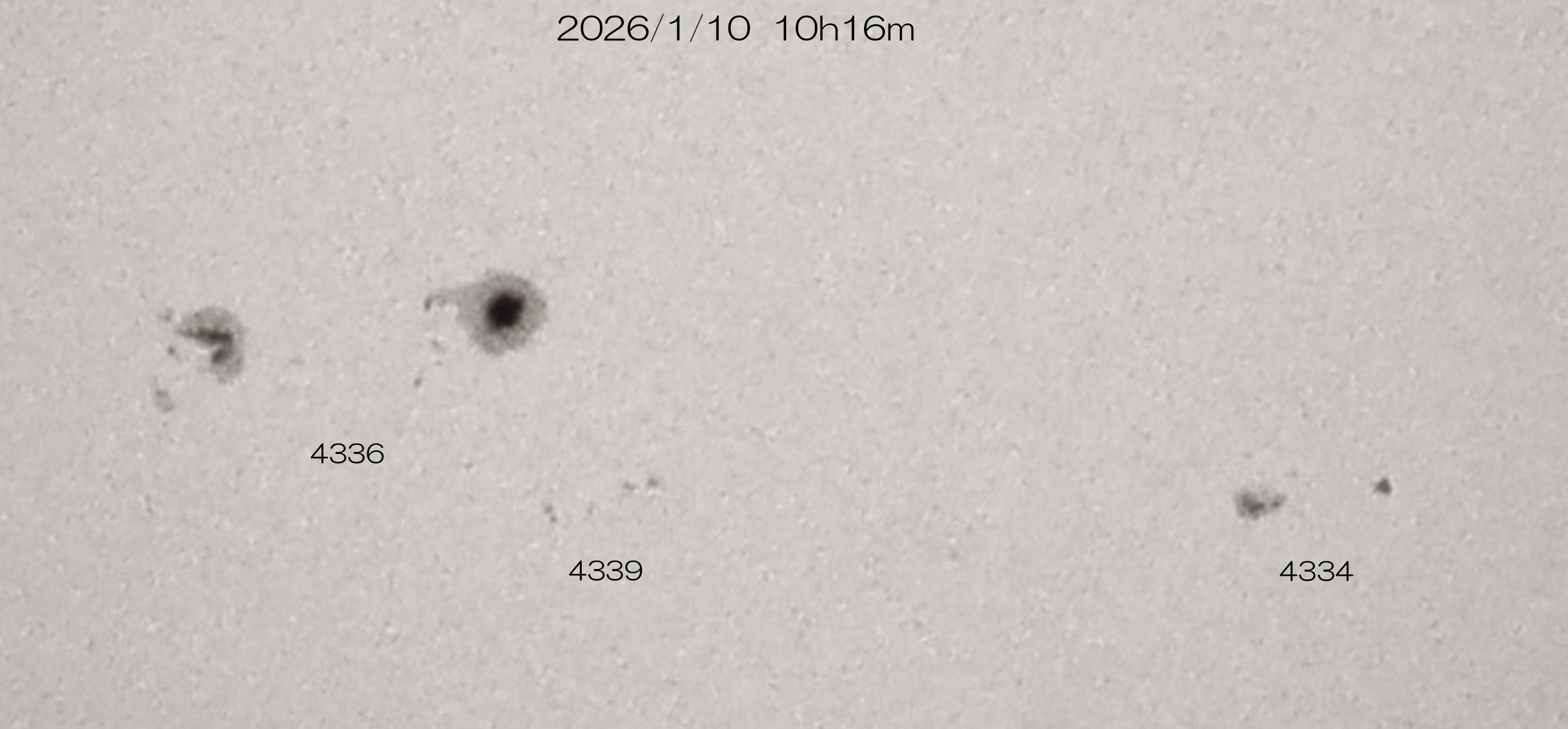 太陽中央にきた3つの黒点群4334・4336・4339の部分を拡大してみました。
