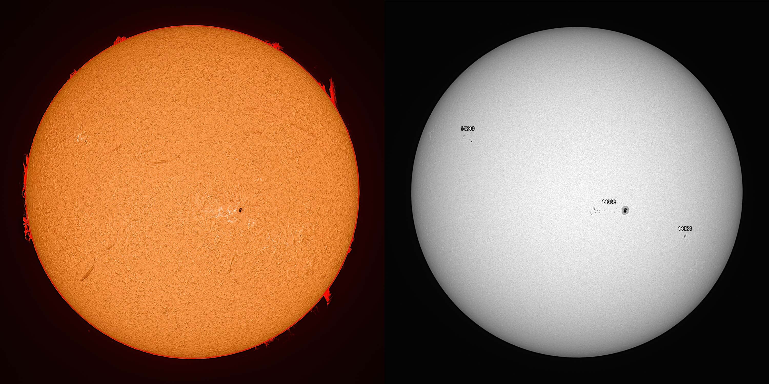 光球面:FireCapture、ROI 3600x2400、Gain 100、1.75msec x1000、撮影時間 31秒/プロミネンス:FireCapture、ROI 3600x2400、Gain 300、1.75msec x1000、撮影時間 31秒