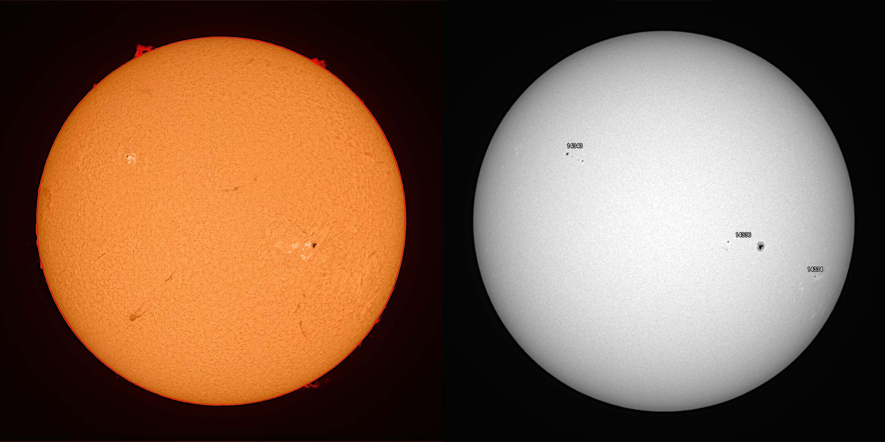 光球面:FireCapture、ROI 3600x2400、Gain 100、1.85msec x1000、撮影時間 31秒/プロミネンス:FireCapture、ROI 3600x2400、Gain 300、1.85msec x1000、撮影時間 31秒