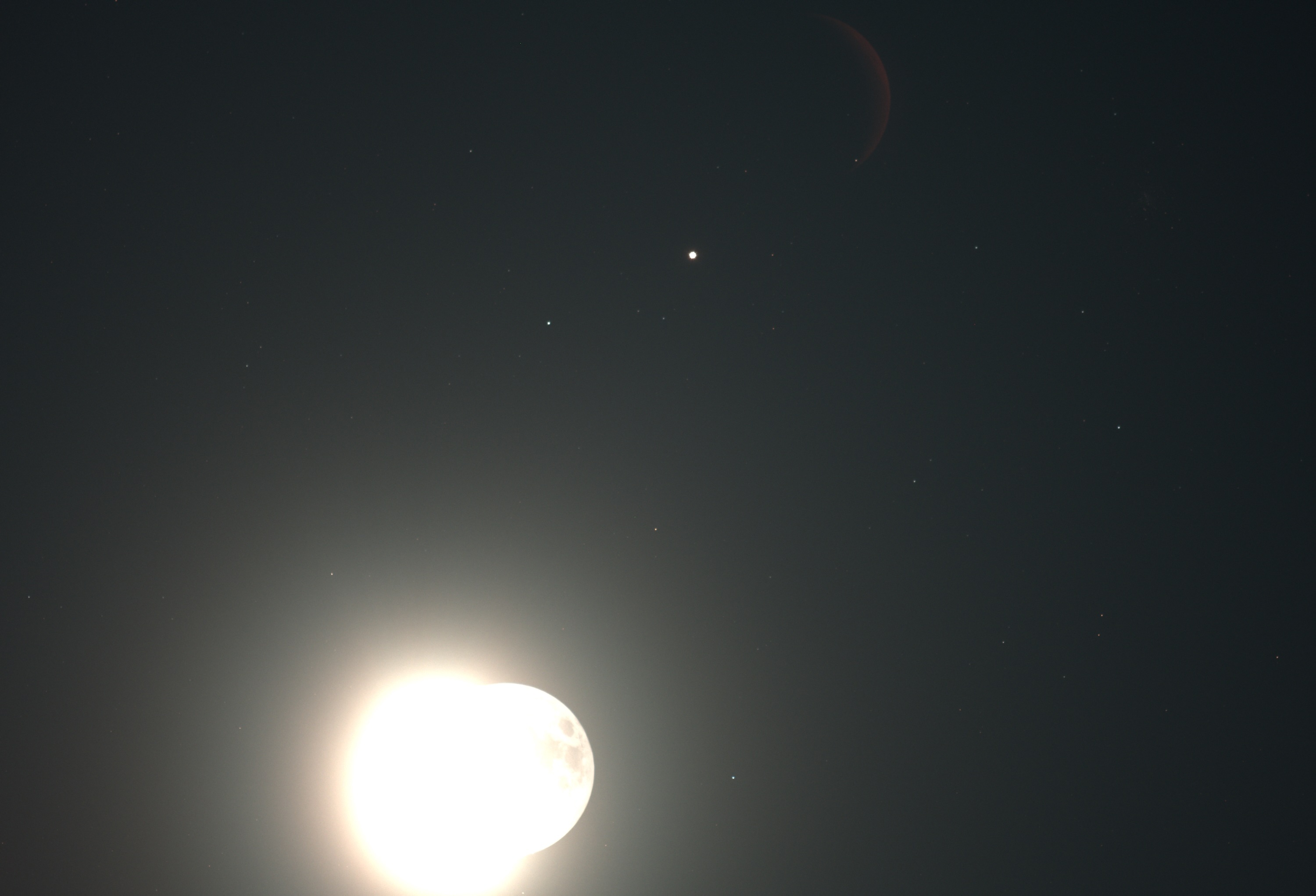 01/15の月とアンタレスとM4です。M4は右上、月のゴーストのさらに右にうっすらと写ってます。