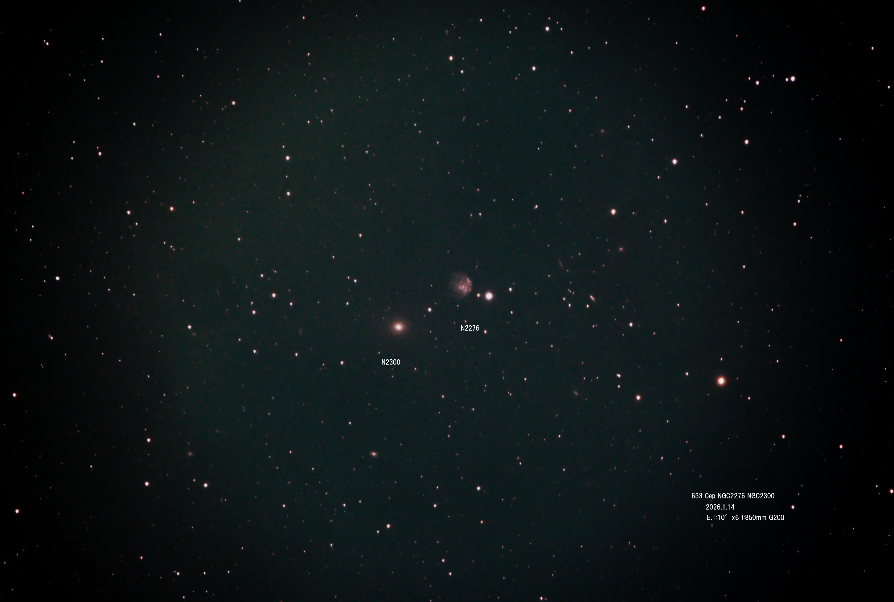 赤緯85度のためほぼ1年中みられるこの二つの銀河は重力的相互作用があると言われ、N2276の形状が歪んでいるのがこの画像でもわかります。