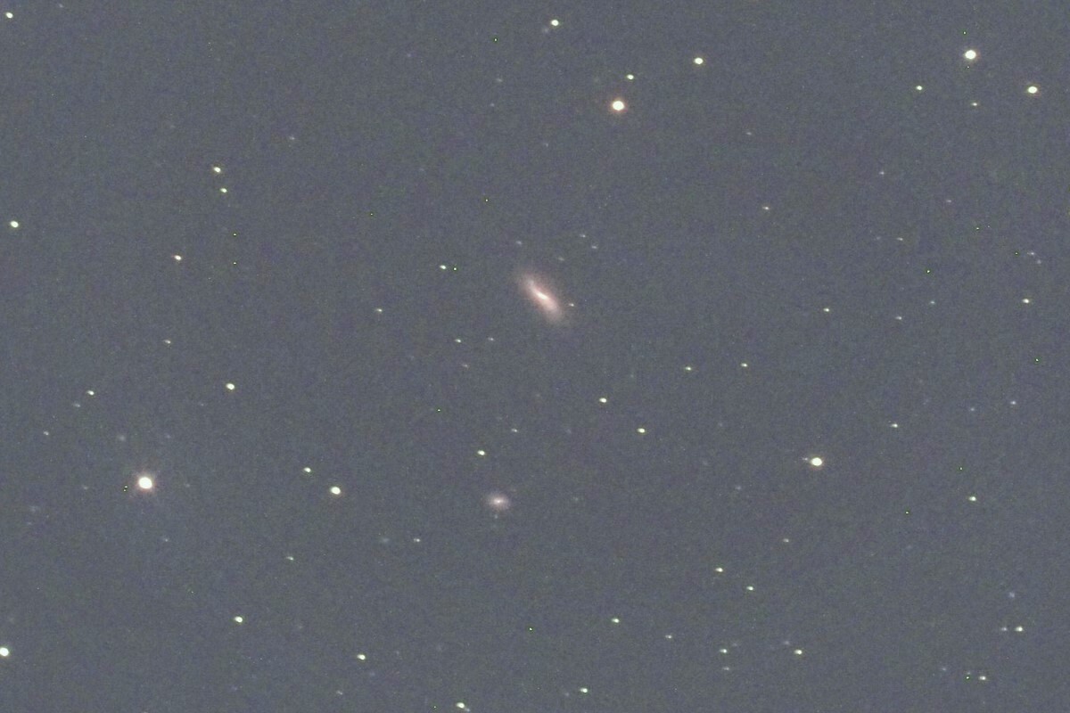 「くじら座」ζ星(ゼータ)の北0.6度付近に位置する棒渦巻銀河で、前回投稿のNGC681も近くにあります。 上のねじれたように見えるのがNGC701で12.14等、タイプはSBc、下の丸っこいのがIC1738で14.70等、タイプはSBです。