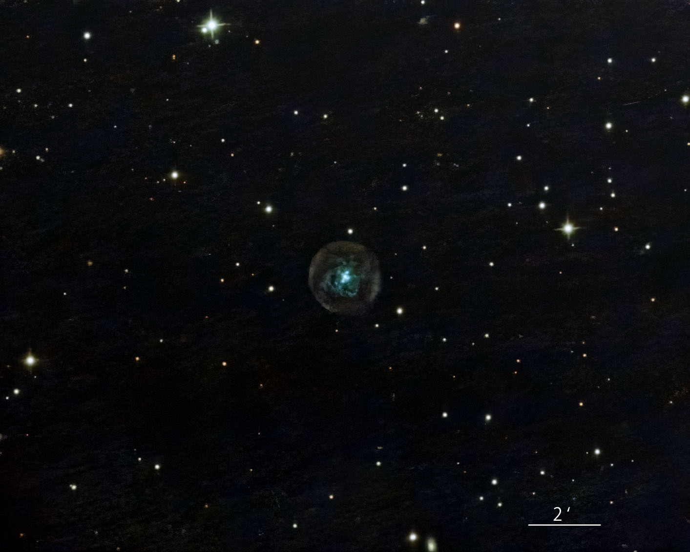 2025/12/28撮影分の投稿歴がありますが、あまりに露出不足だったので追加撮影をしてみました。光害地であるうえにあまり良い空に恵まれなかったこともあって、時間をかけた割にはあまり良い画像にはなりませんでした。見かけサイズは約2’もあって比較的大きいのですが暗い惑星状星雲です。