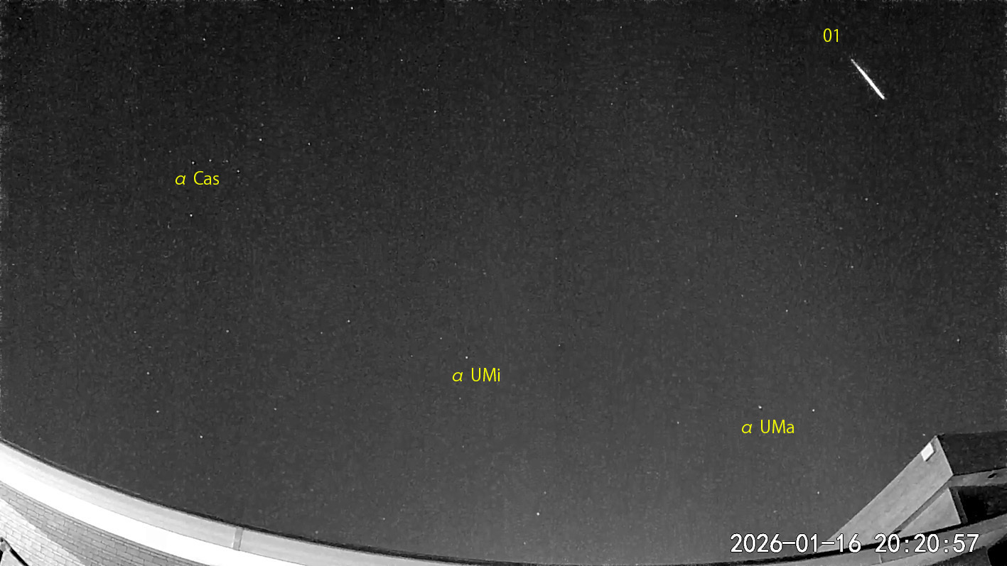 20:20の1コマを処理しました。 出現した順に数字と記号を始点付近に記入。tは痕traceあり。【流星群記号】Co:かみのけ座流星群 晴れが続きましたが、流星の活動は低調でした。