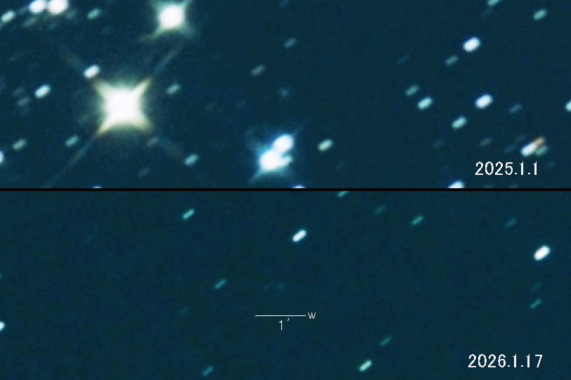 2025.1.1 → 15等級後半 2026.1.17 → 16等級後半 2025年6月13日が近日点でしたが 地球に近い2025年1月頃が明るさのピークでした。