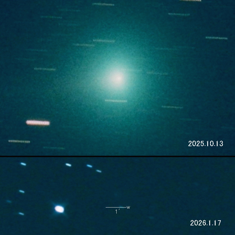 2025.10.13 → 6等級前半 2026.1.17 → 16等級前半 2025年9月12日が近日点で 10月初旬が明るさのピークでした。