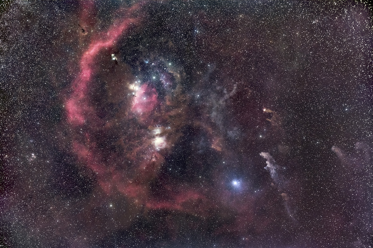 85mm中望遠で切り取ったオリオン座HⅡ領域です。段階露光撮影の途中で天候が急変して雪まで降り出し、やむなく撤収。その結果、中途半端な露光となり、大星雲とアルタニク付近が十分には表現できていません。機会を見て再チャレンジです。