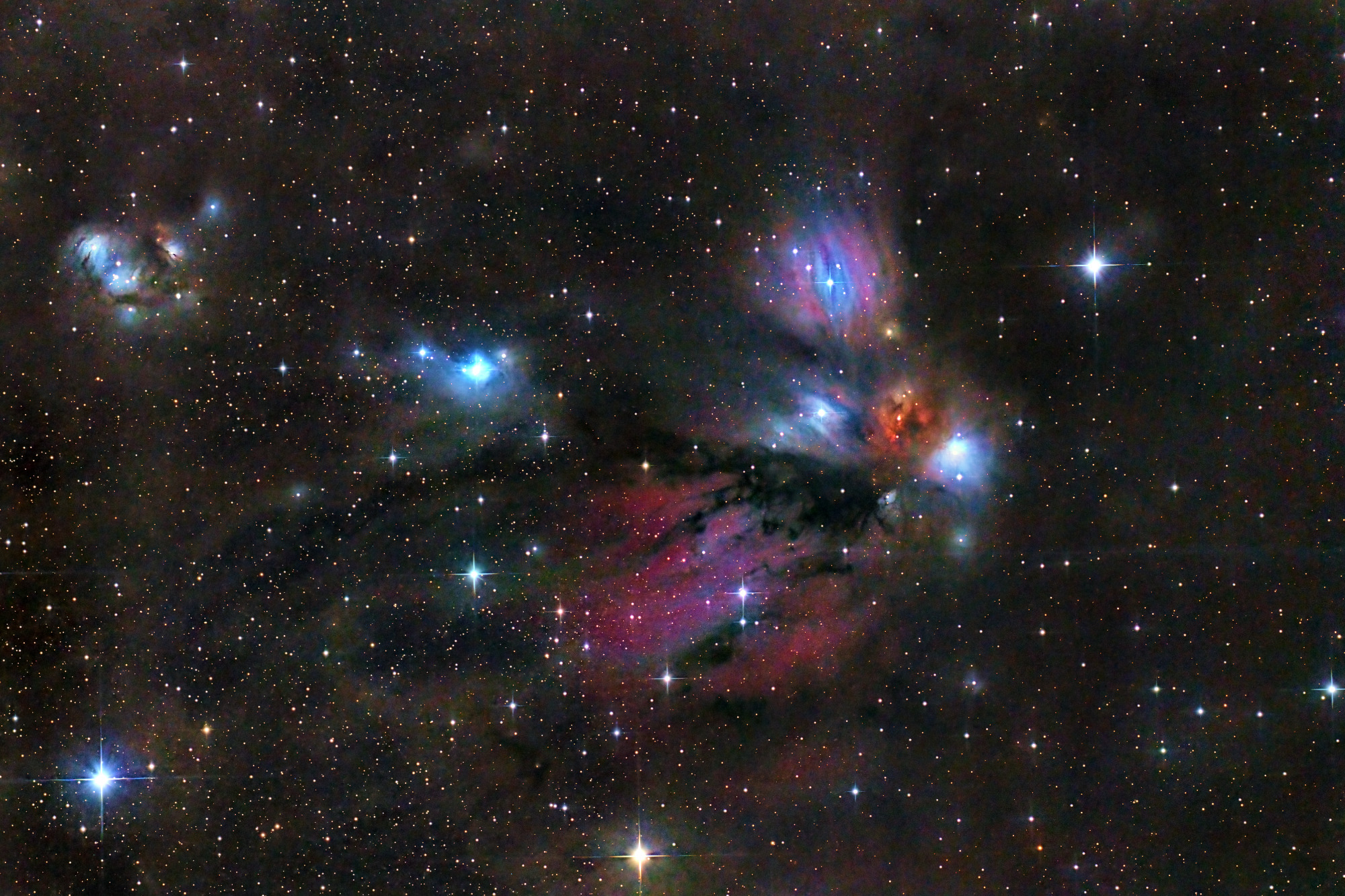 PixInsight(PI)でバイアス・フラット補正、コンポジット、RGB変換、2×drizzle、PIでBlurXTerminator、NoiseXTerminator、ストレッチ(MAS)、StarXTerminatorで星雲強調処理、仕上げはAffinity Photo2を利用