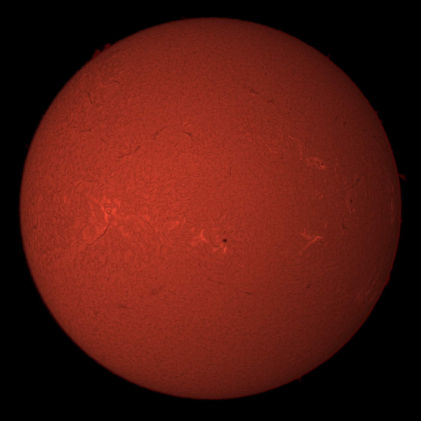 AutoStakkert! 4.0.13(スタック(1000 x 0.05) + Sharpened)、Win フォト(解像度変更)、SI10(太陽Hα画像補正)。