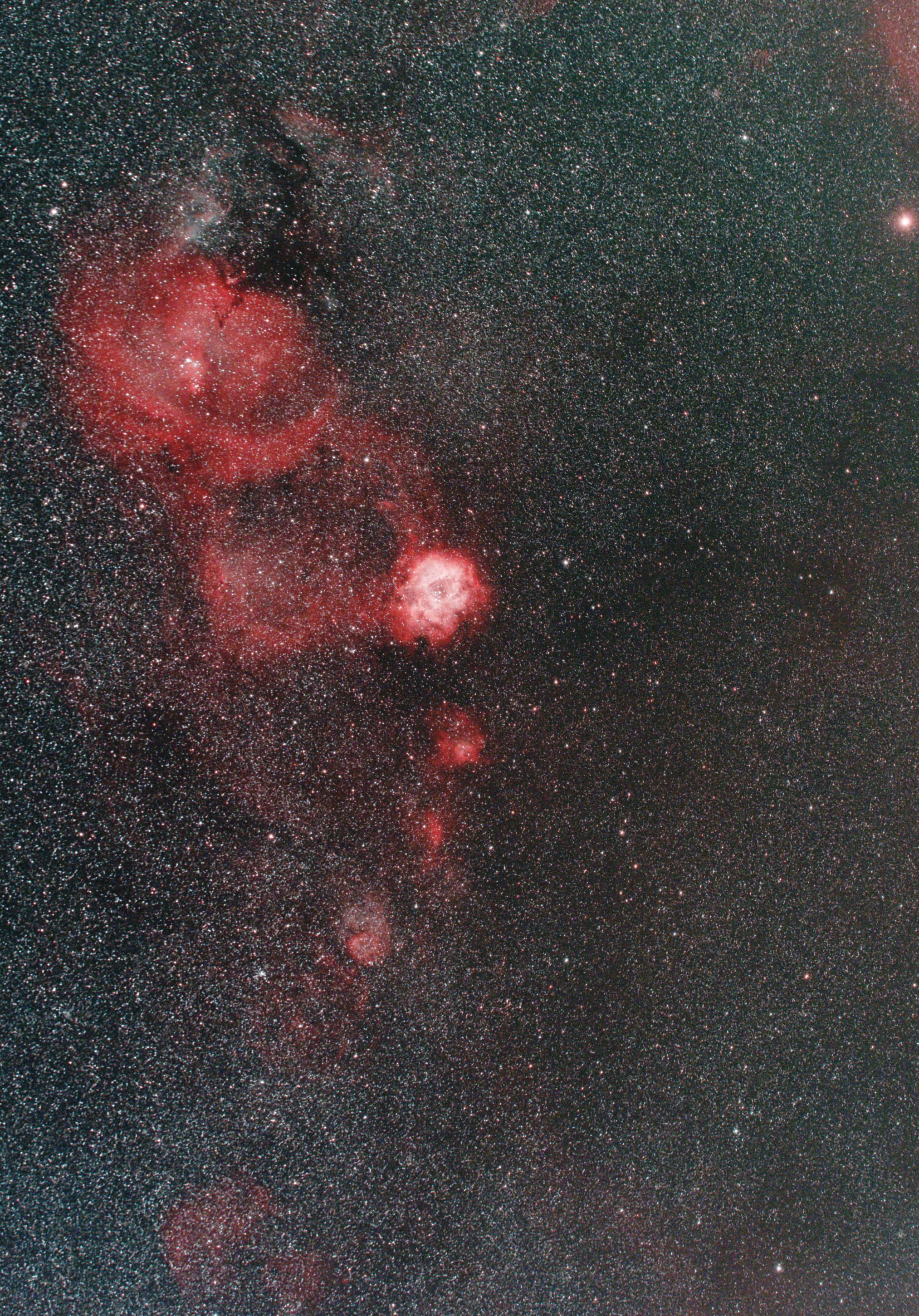 コーン星雲から南に連なる散光星雲 いっかくじゅう座