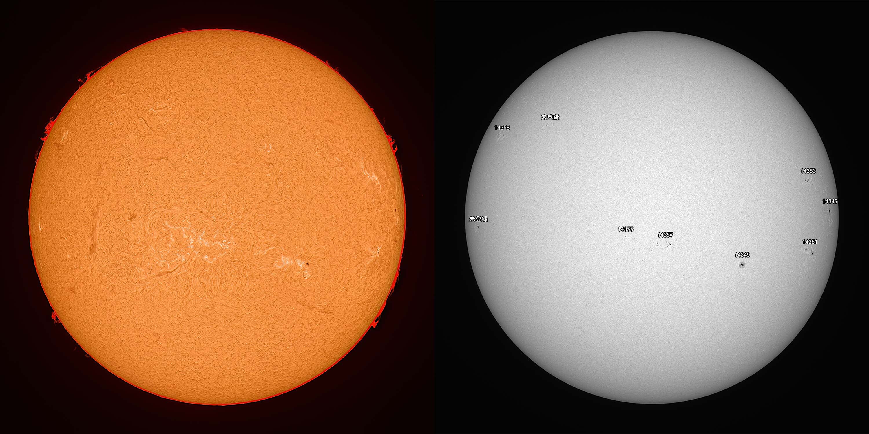 光球面:FireCapture、ROI 3600x2400、Gain 100、2.35msec x1000、撮影時間 31秒/プロミネンス:FireCapture、ROI 3600x2400、Gain 300、2.35msec x1000、撮影時間 31秒