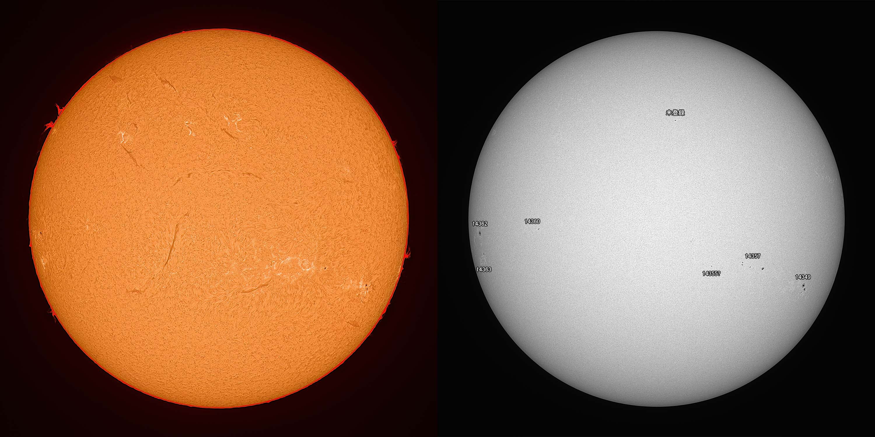 光球面:FireCapture、ROI 3600x2400、Gain 100、1.85msec x1000、撮影時間 31秒/プロミネンス:FireCapture、ROI 3600x2400、Gain 300、1.85msec x1000、撮影時間 31秒