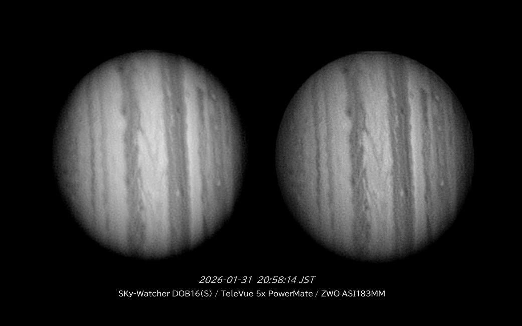 20時過ぎまでのシーイングは酷いものでした。21時前後に安定しましたが、それ以降はいつも悪化し撮影できません。異なる条件の処理画像を並べています。元画像が良くないと画像加工の見極めに悩みます。