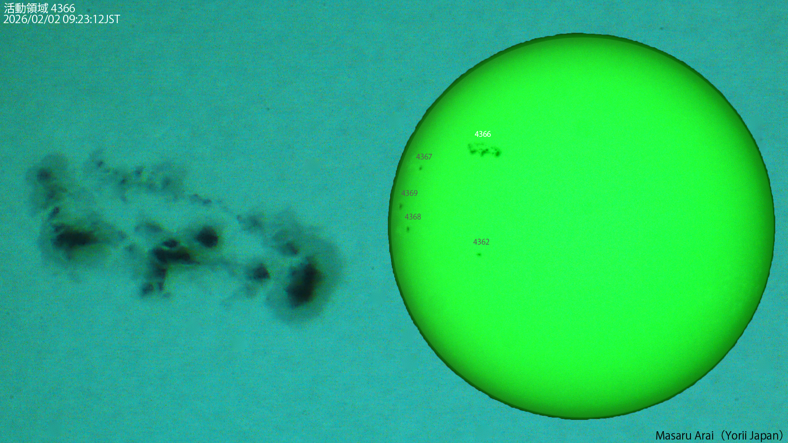 SE120L+DMC-GH1よる 4366( Ekc/Dai ) です。 NICT情報:活動領域4366でXクラスフレアが数回発生し、最大のものは、活動領域4366で2日8時57分JSTに発生したX8.1フレアでした。