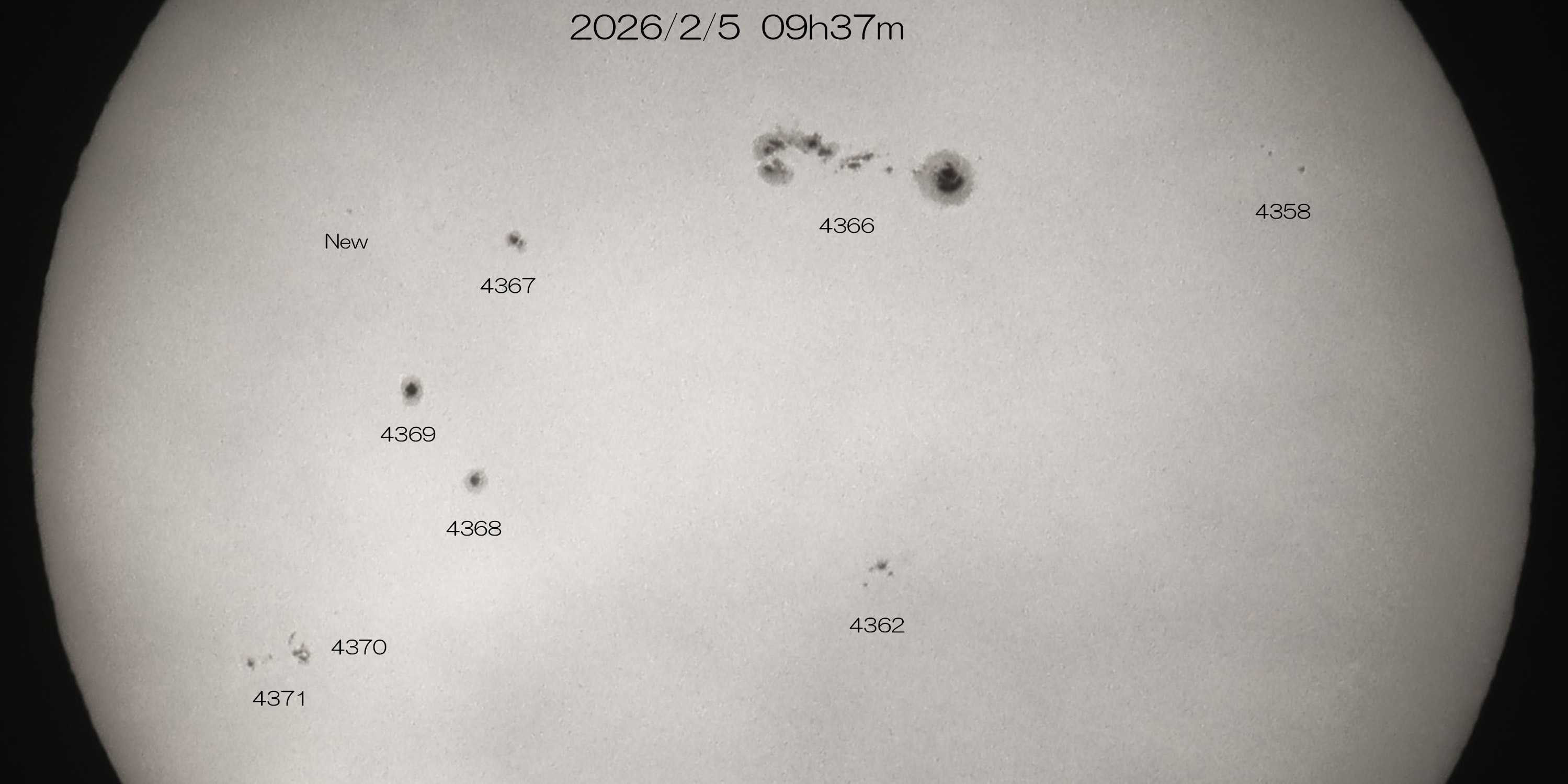 薄雲が通る中での撮影で、露出が多くかかりました。大きな4366群は週の初めごろに比べてやや縮小してきました。立春を過ぎて日差しは高くなってきました。