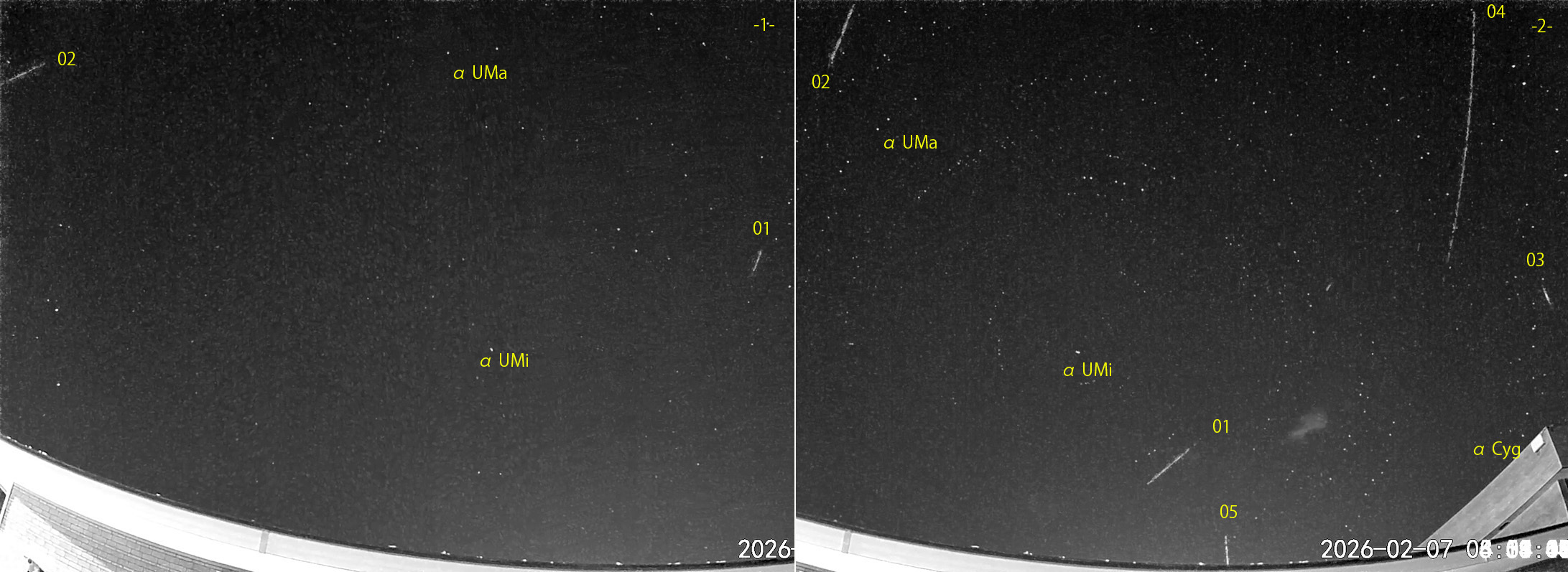 1) 01:37から約1時間の2コマを、2) 03:53から約1.5時間の5コマを処理しました。 出現した順に数字と記号を始点付近に記入。tは痕traceあり。 宵空・未明ともデネブが写るようになりました。
