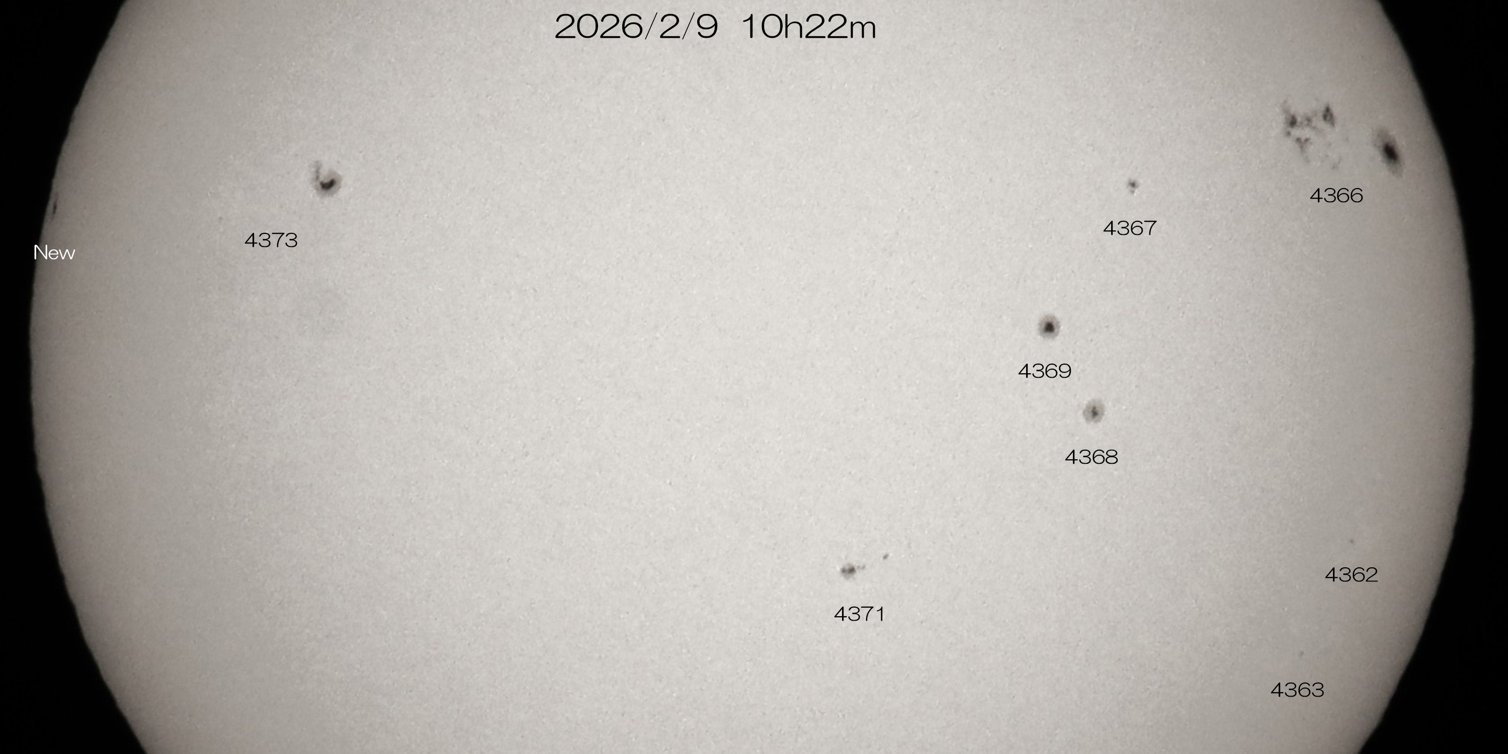 東端から新黒点群が出てきました。4366群は西端近くにきました。南西端の小さな4362・4363群はかろうじて写りました。