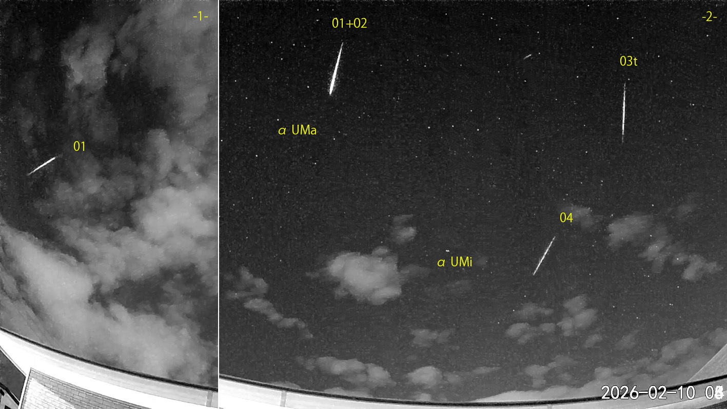 1) 02:45の1コマを、2) 03:56から約1時間の4コマを処理しました。比較的雲多し。 出現した順に数字と記号を始点付近に記入。tは痕traceあり。