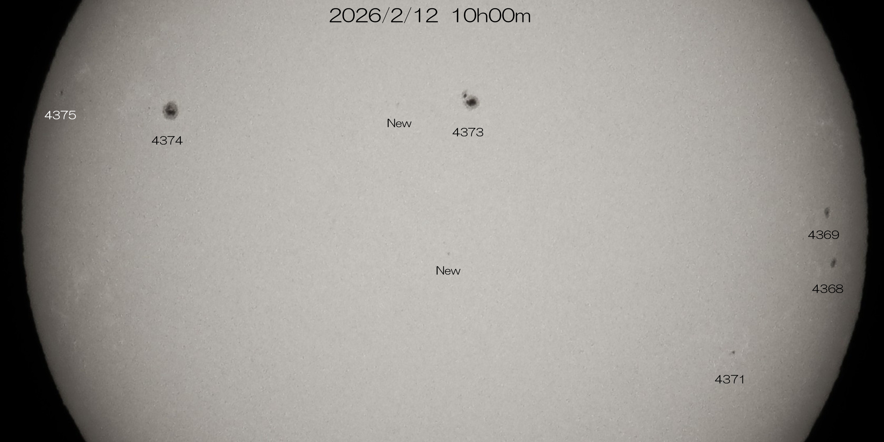 東端から新黒点群4375が出てきました。中央にも小さな2つの新黒点群が現れたようです。