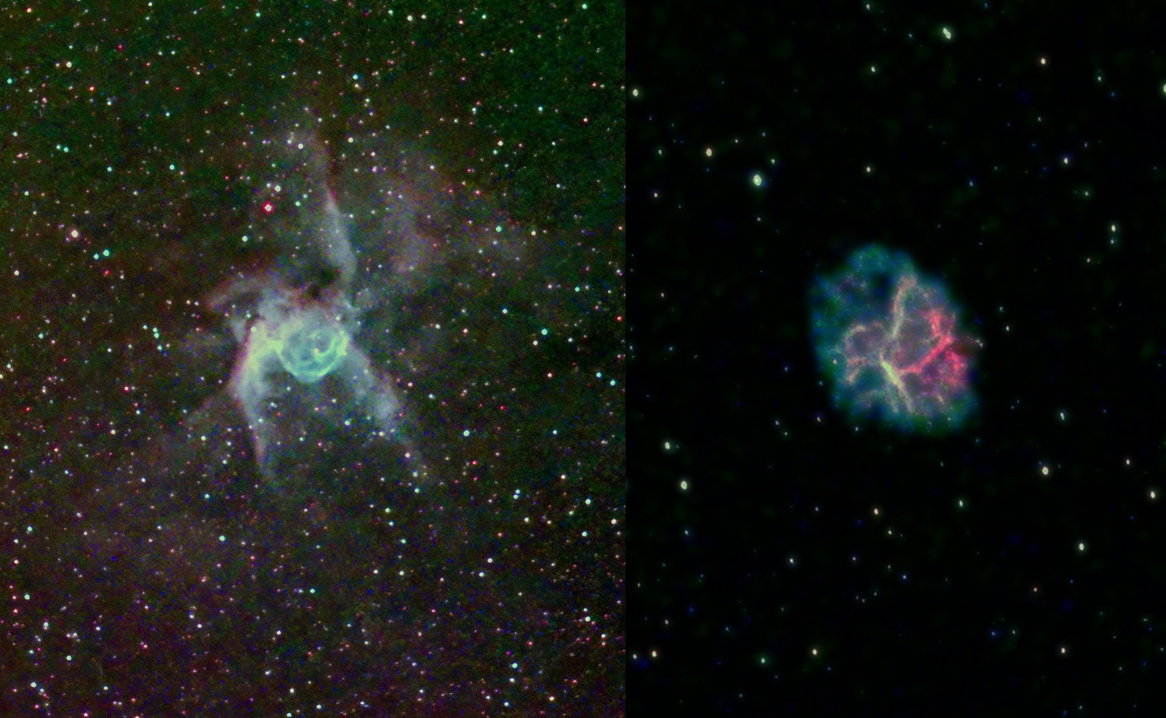 同一の設定で撮影、処理しました。 (ISO12800、1分露出を30枚加算平均コンポジット。) 先にM1、続けてNGC2359を22:20:38より30枚撮影。