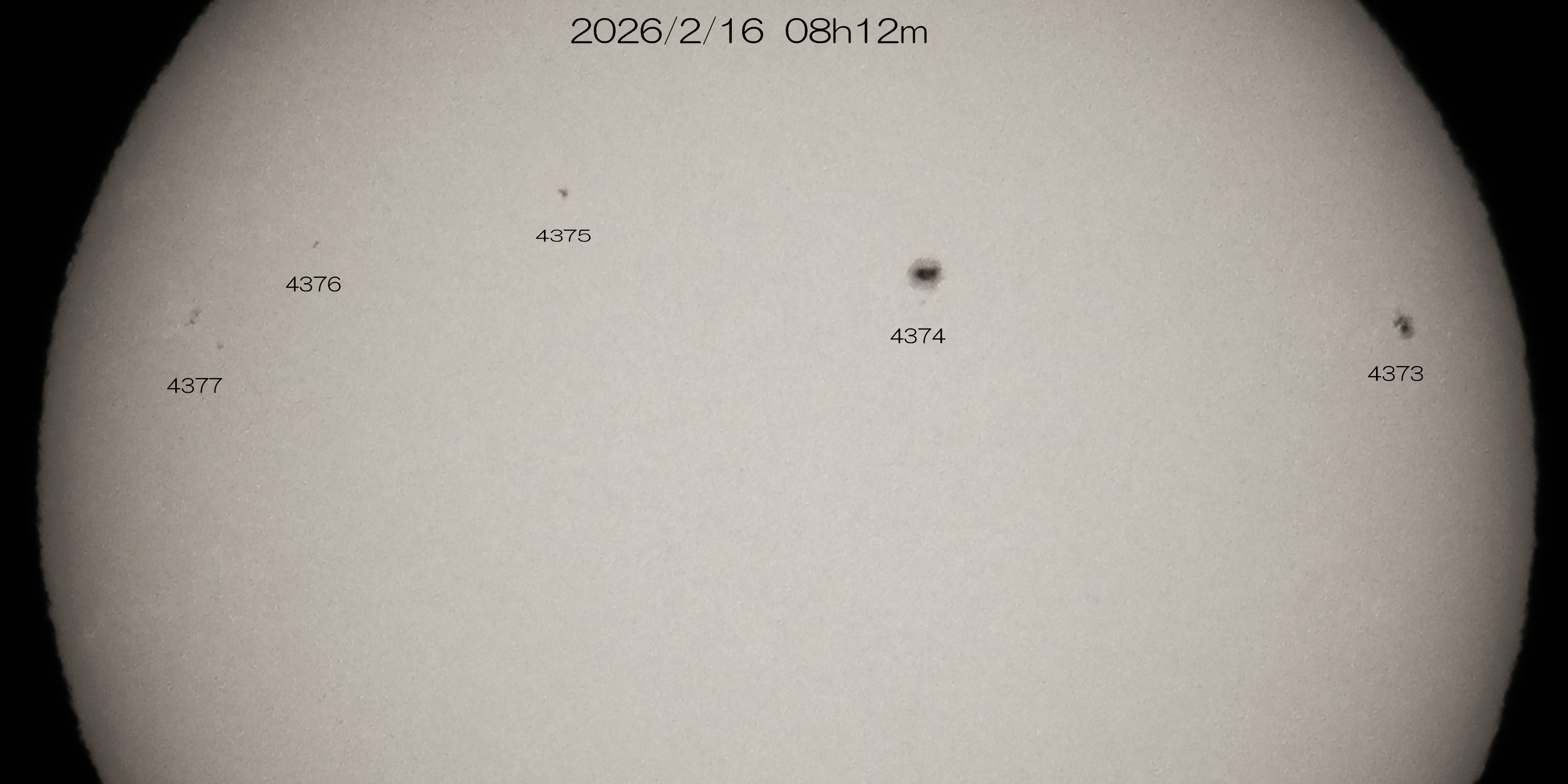たいへん珍しいことに、黒点群が西から番号順に並んでいます。今日は昼前から曇りの予報で、久しぶりに朝8時台に撮りました。
