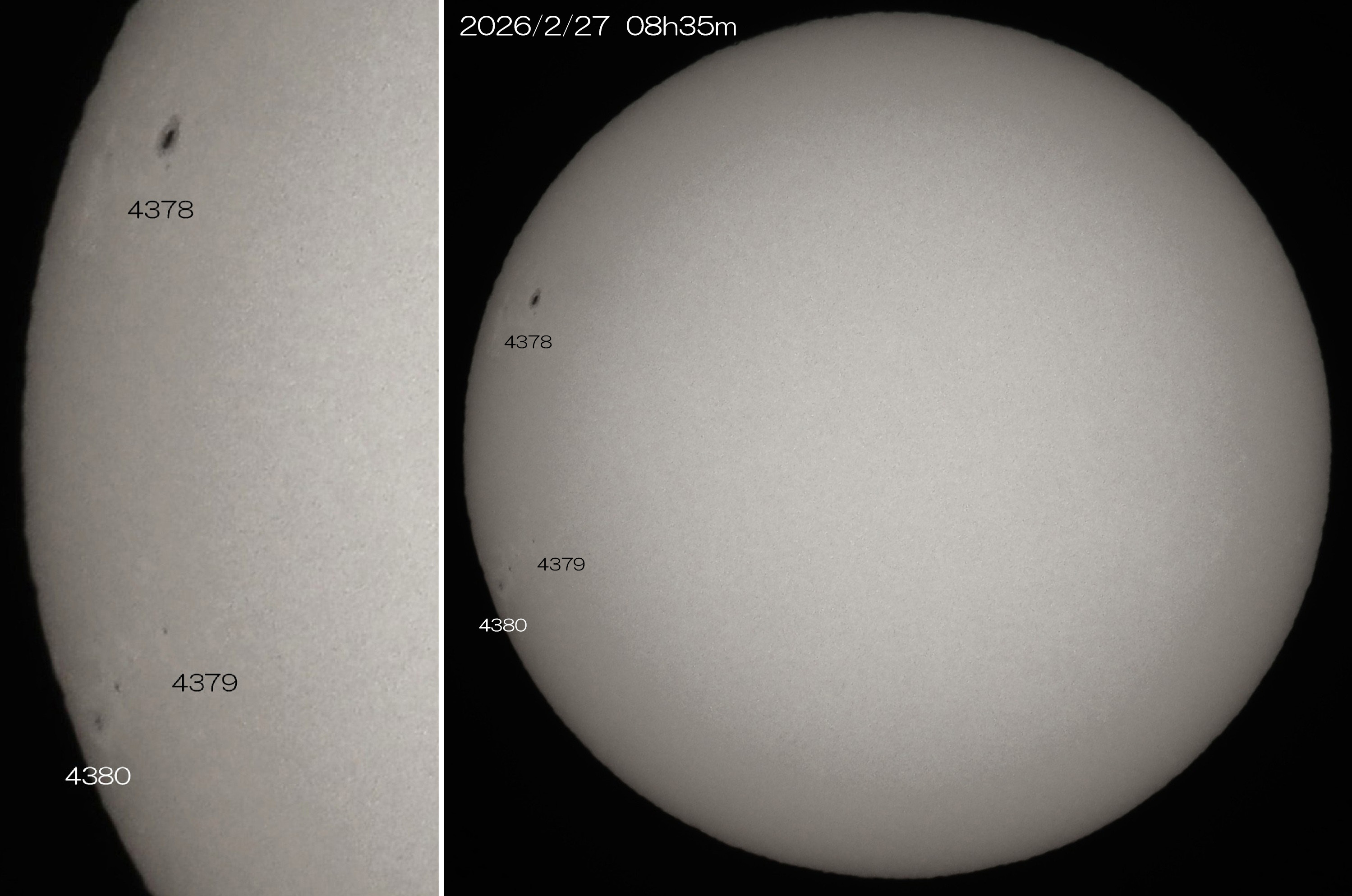 東端から活発な領域が出てきました。3日ぶりの撮影です。