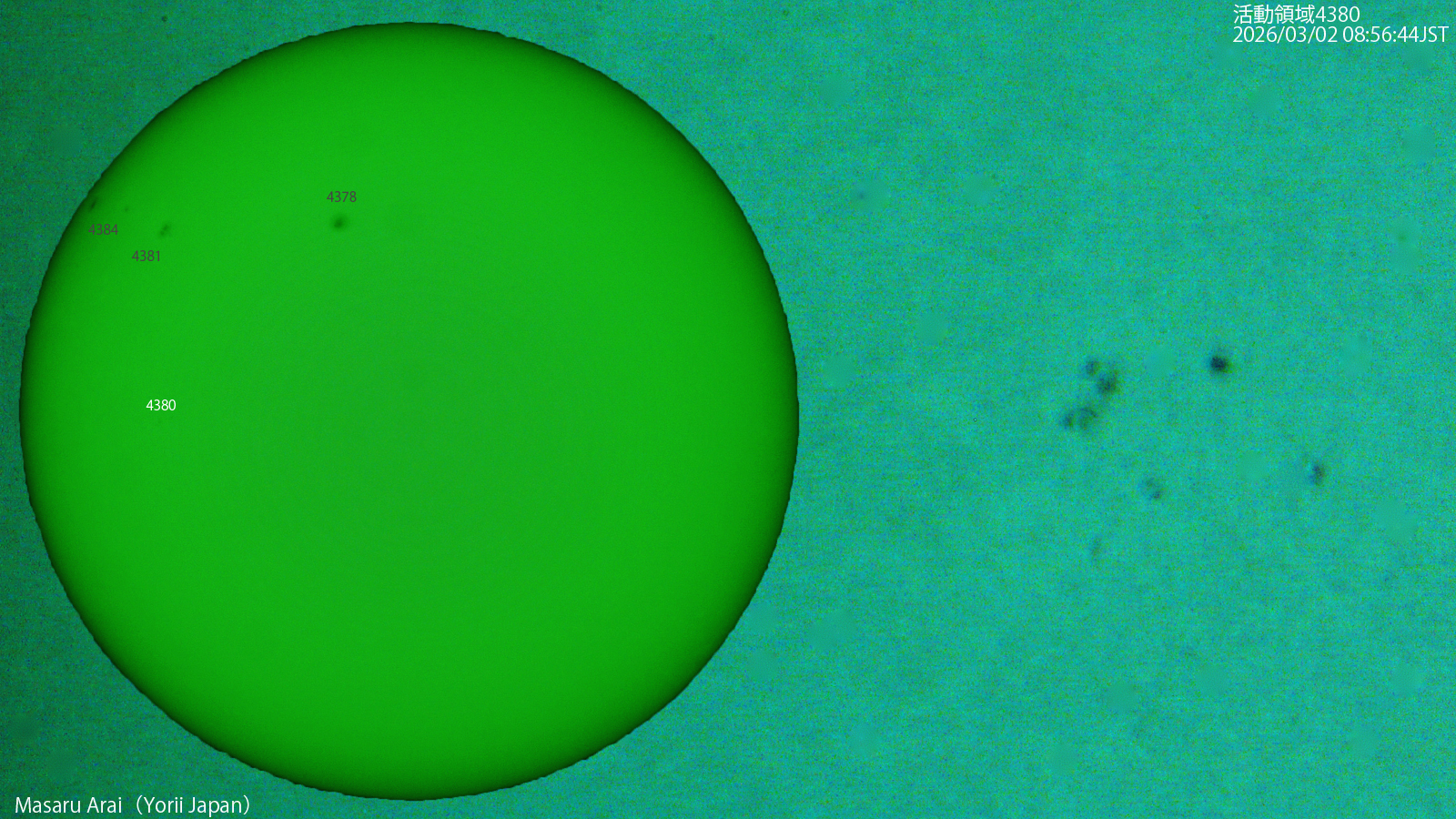 SE120L+DMC-GH1よる 4380( Bxo/Cao ) です。 NICT情報:活動領域4384などでCクラスフレアが数回発生し、最大のものは、活動領域4384で3月2日13時38分JSTに発生したC4.5フレアでした。