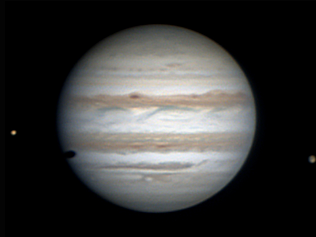 シーイングは良くありませんでしたが、衛星ガニメデ(画像右側)とその影、イオ(画像左側)を撮影できました。